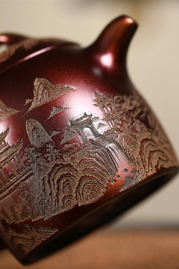 【作品介紹】此款壺形線條流暢,壺把,壺嘴,壺身壹氣呵成栩栩如生,是收藏把玩的好壺,泥料色澤古樸典雅,日久使用,漸露鋒芒,養成變化快,溫潤莊重,用其泡茶,使用的年代久,壺身就溫潤,泡出來的茶湯也就醇郁芳馨。