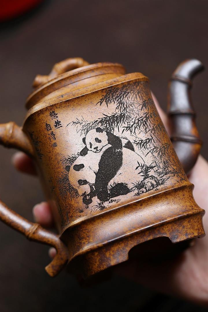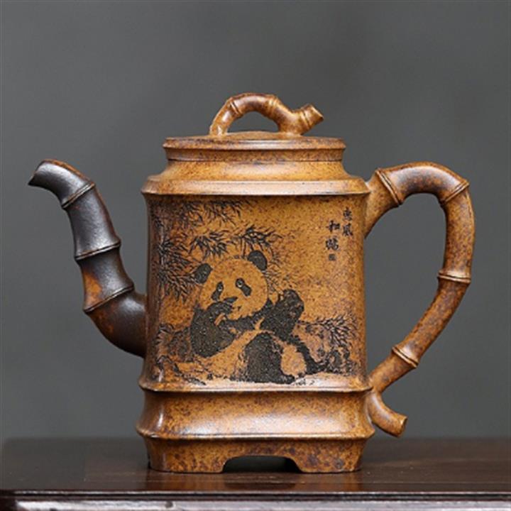 330cc原礦高溫段泥熊貓四方竹節茶壺POT8504