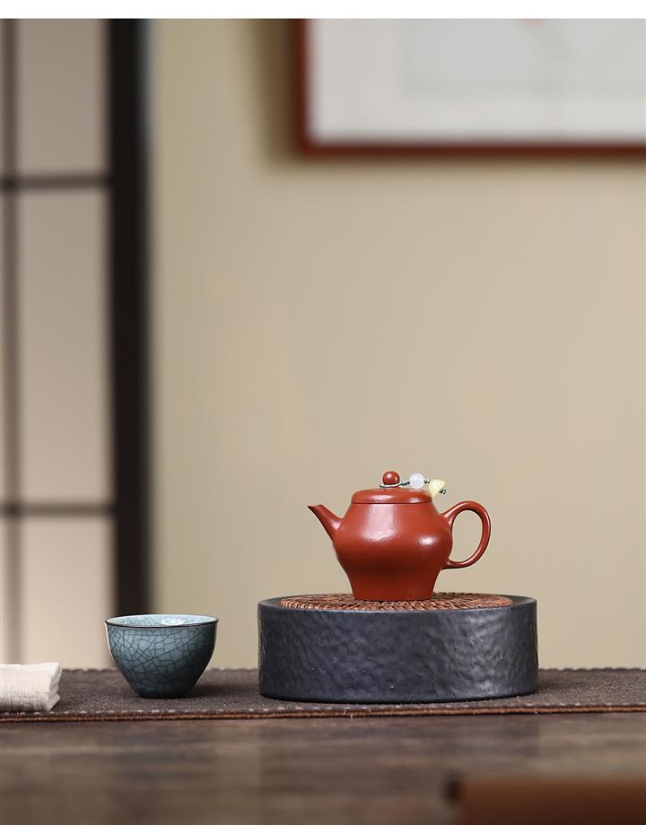 【泥料特點】砂土氣重,似淳實農民,日久使用,漸露鋒芒,養成變化,溫潤莊重。紫砂是壹種雙重氣孔結構的多孔性材質,氣孔微細,密度高。用紫砂壺沏茶,不失原味,且香不渙散,得茶之真香真味。紫砂使用越久,壺身色澤越發光亮照人,氣韻溫雅。紫砂壺長久使用器身會因撫摸擦拭,變得越發溫潤光澤。