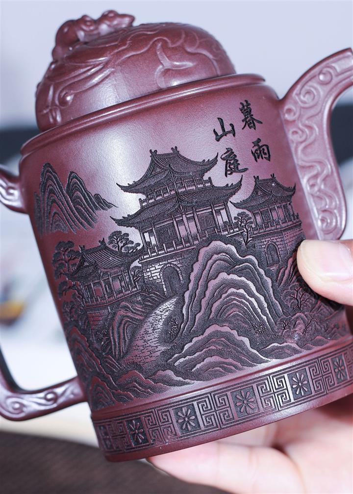 【作品介紹】此款壺形線條流暢,壺把,壺嘴,壺身壹氣呵成栩栩如生,是收藏把玩的好壺,泥料色澤古樸典雅,日久使用,漸露鋒芒,養成變化快,溫潤莊重,用其泡茶,使用的年代久,壺身就溫潤,泡出來的茶湯也就醇郁芳馨。