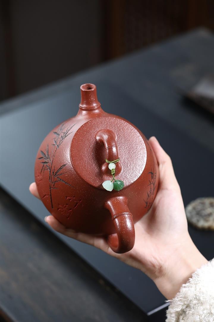 【作品介紹】此款壺形線條流暢,壺把,壺嘴,壺身壹氣呵成栩栩如生,是收藏把玩的好壺,泥料色澤古樸典雅,日久使用,漸露鋒芒,養成變化快,溫潤莊重,用其泡茶,使用的年代久,壺身就溫潤,泡出來的茶湯也就醇郁芳馨。