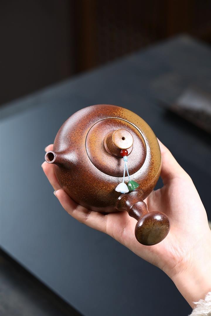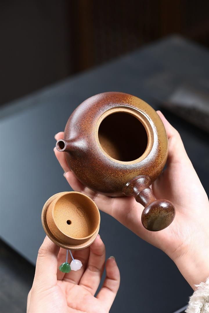 220cc原礦龍骨金砂柴燒金砂焰羽茶壺POT8525