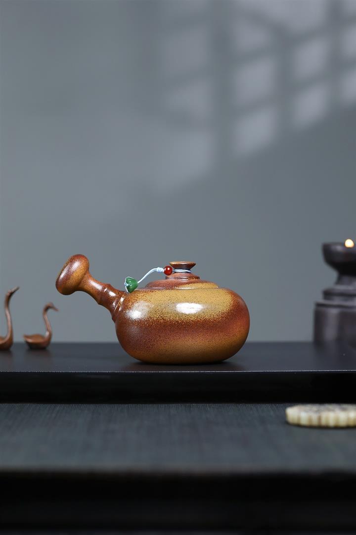 【泥料特點】砂土氣重,似淳實農民,日久使用,漸露鋒芒,養成變化,溫潤莊重。紫砂是壹種雙重氣孔結構的多孔性材質,氣孔微細,密度高。用紫砂壺沏茶,不失原味,且香不渙散,得茶之真香真味。紫砂使用越久,壺身色澤越發光亮照人,氣韻溫雅。紫砂壺長久使用器身會因撫摸擦拭,變得越發溫潤光澤。