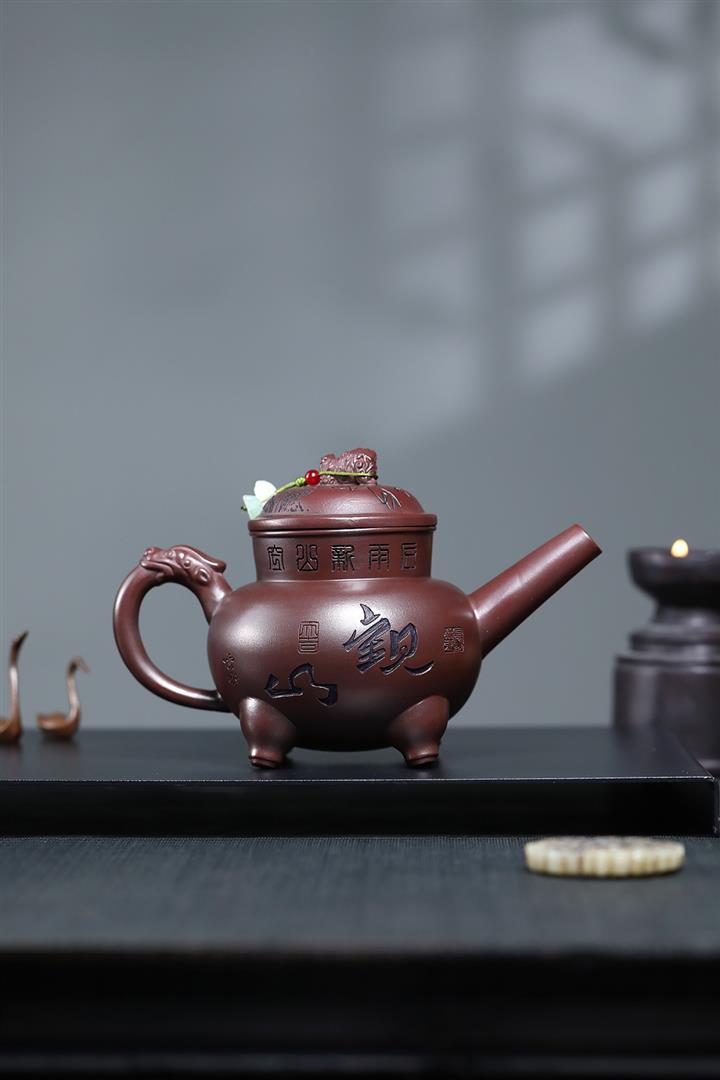 450cc原礦古銅烏泥龍獅垂釣茶壺POT8526