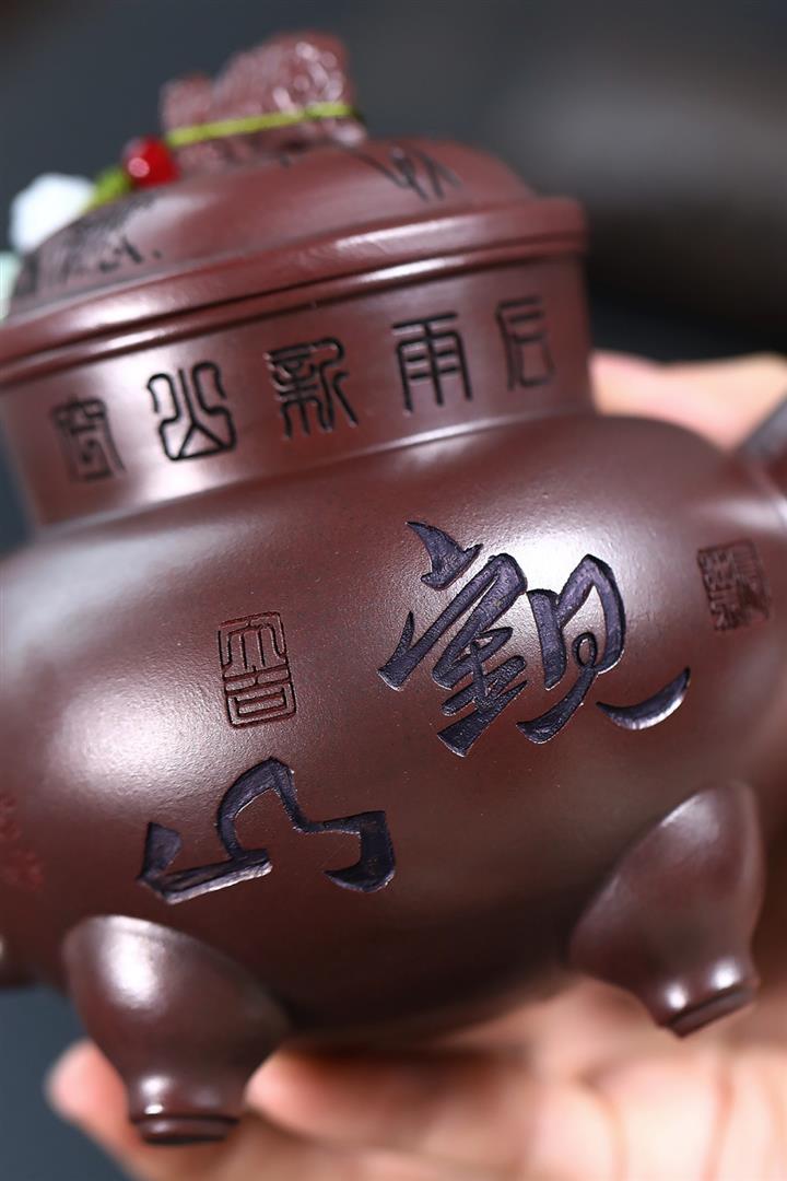 【泥料特點】砂土氣重,似淳實農民,日久使用,漸露鋒芒,養成變化,溫潤莊重。紫砂是壹種雙重氣孔結構的多孔性材質,氣孔微細,密度高。用紫砂壺沏茶,不失原味,且香不渙散,得茶之真香真味。紫砂使用越久,壺身色澤越發光亮照人,氣韻溫雅。紫砂壺長久使用器身會因撫摸擦拭,變得越發溫潤光澤。