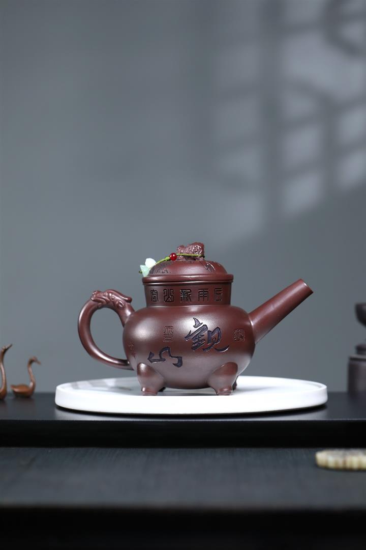 【作品介紹】此款壺形線條流暢,壺把,壺嘴,壺身壹氣呵成栩栩如生,是收藏把玩的好壺,泥料色澤古樸典雅,日久使用,漸露鋒芒,養成變化快,溫潤莊重,用其泡茶,使用的年代久,壺身就溫潤,泡出來的茶湯也就醇郁芳馨。