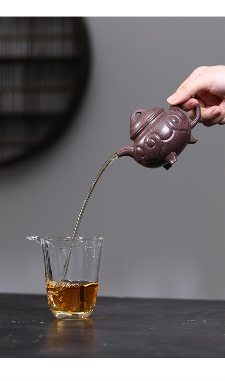 【泥料特點】砂土氣重,似淳實農民,日久使用,漸露鋒芒,養成變化,溫潤莊重。紫砂是壹種雙重氣孔結構的多孔性材質,氣孔微細,密度高。用紫砂壺沏茶,不失原味,且香不渙散,得茶之真香真味。紫砂使用越久,壺身色澤越發光亮照人,氣韻溫雅。紫砂壺長久使用器身會因撫摸擦拭,變得越發溫潤光澤。
