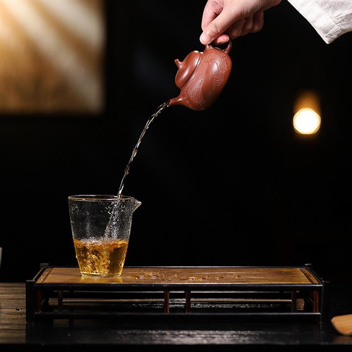 【泥料特點】砂土氣重,似淳實農民,日久使用,漸露鋒芒,養成變化,溫潤莊重。紫砂是壹種雙重氣孔結構的多孔性材質,氣孔微細,密度高。用紫砂壺沏茶,不失原味,且香不渙散,得茶之真香真味。紫砂使用越久,壺身色澤越發光亮照人,氣韻溫雅。紫砂壺長久使用器身會因撫摸擦拭,變得越發溫潤光澤。