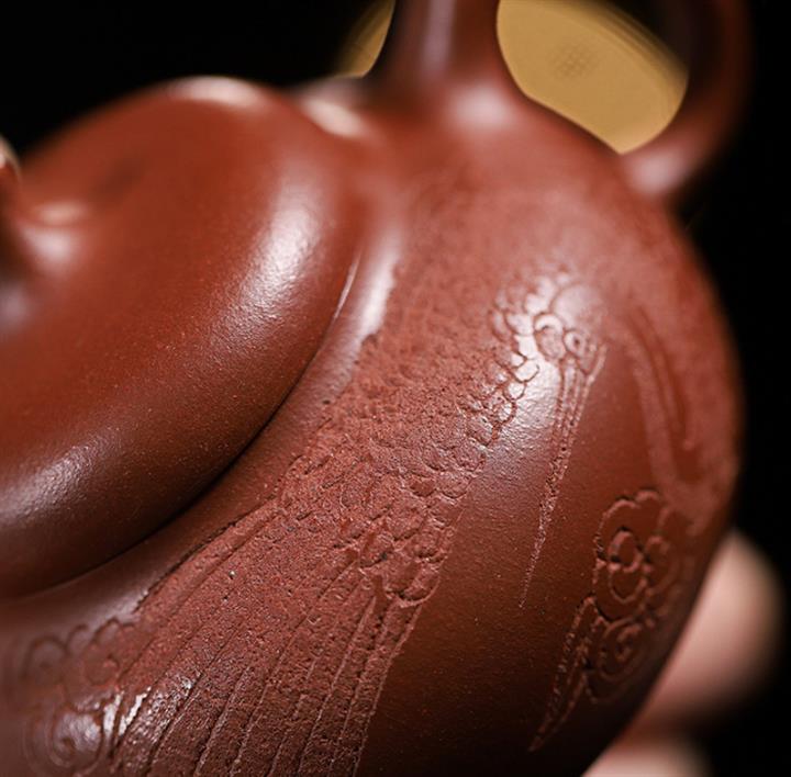 【作品介紹】此款壺形線條流暢,壺把,壺嘴,壺身壹氣呵成栩栩如生,是收藏把玩的好壺,泥料色澤古樸典雅,日久使用,漸露鋒芒,養成變化快,溫潤莊重,用其泡茶,使用的年代久,壺身就溫潤,泡出來的茶湯也就醇郁芳馨。