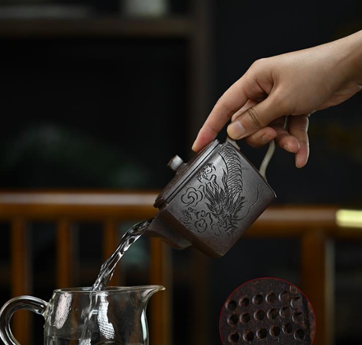 辛·高溫段泥三足龍珠紫砂壺POT6205