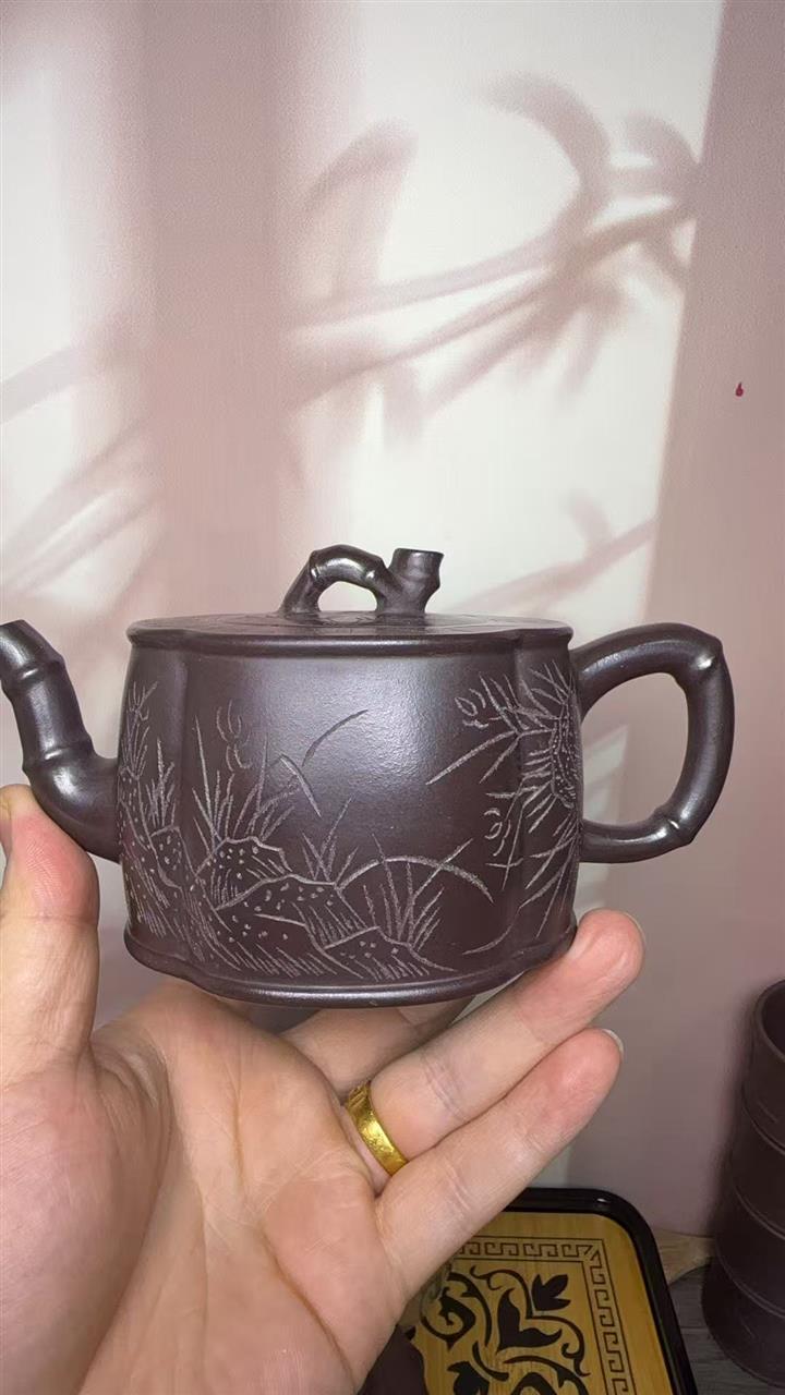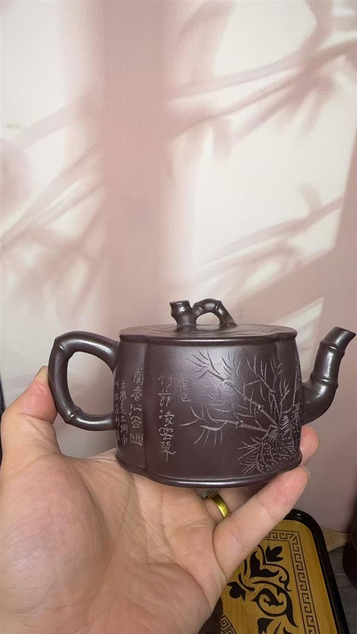 230cc原礦老紫泥蘭竹雙清茶壺POT8540