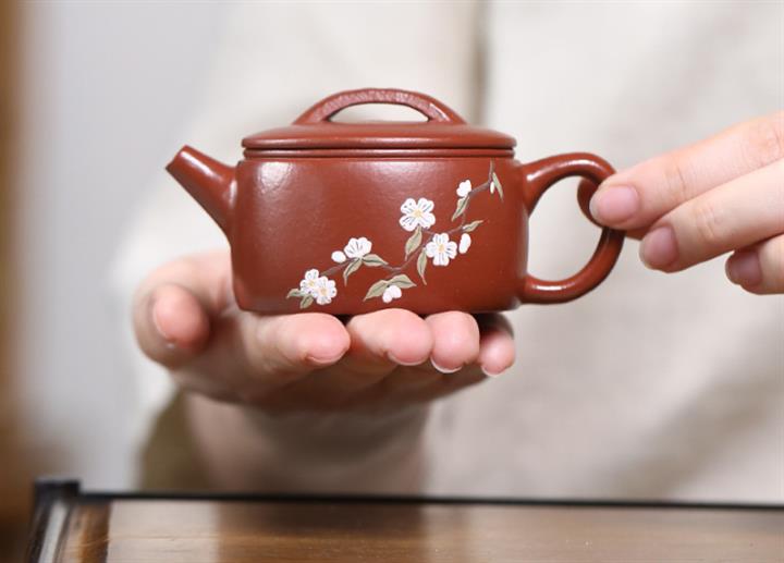 【泥料特點】砂土氣重,似淳實農民,日久使用,漸露鋒芒,養成變化,溫潤莊重。紫砂是壹種雙重氣孔結構的多孔性材質,氣孔微細,密度高。用紫砂壺沏茶,不失原味,且香不渙散,得茶之真香真味。紫砂使用越久,壺身色澤越發光亮照人,氣韻溫雅。紫砂壺長久使用器身會因撫摸擦拭,變得越發溫潤光澤。