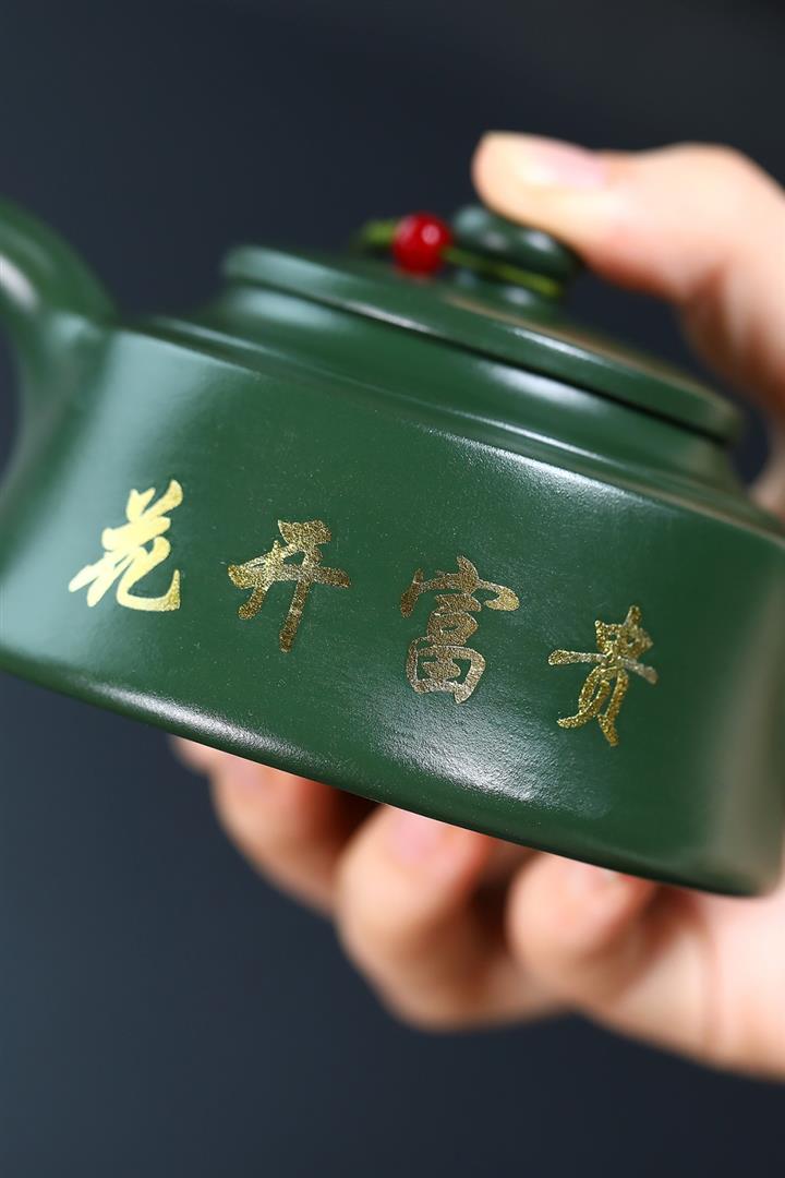 200cc原礦綠泥貼金丹金映翠泡茶壺POT8554