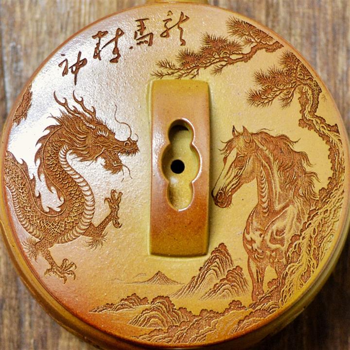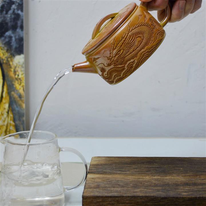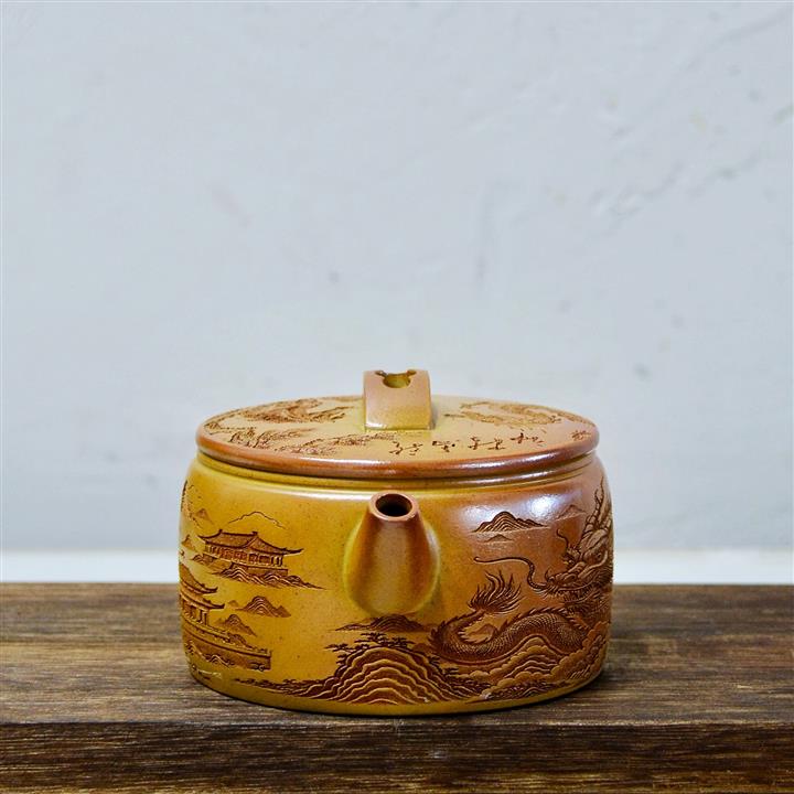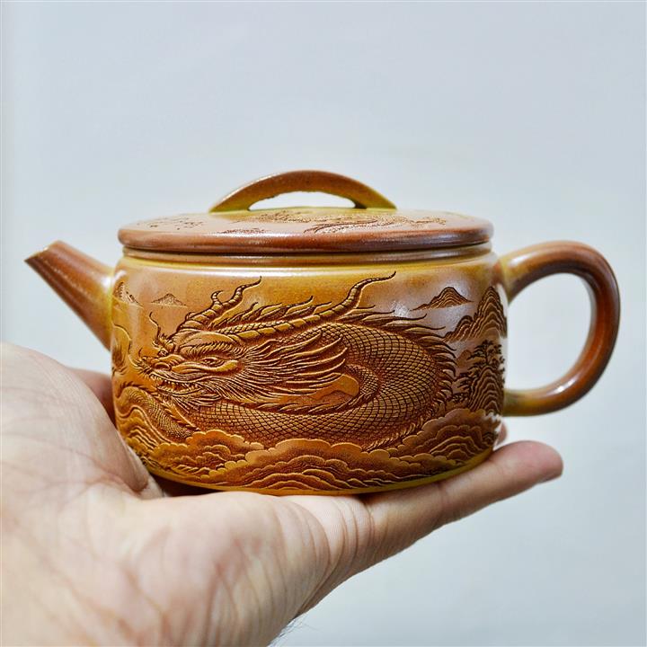 原礦龍骨金砂手工龍紋寒江茶壺POT6903