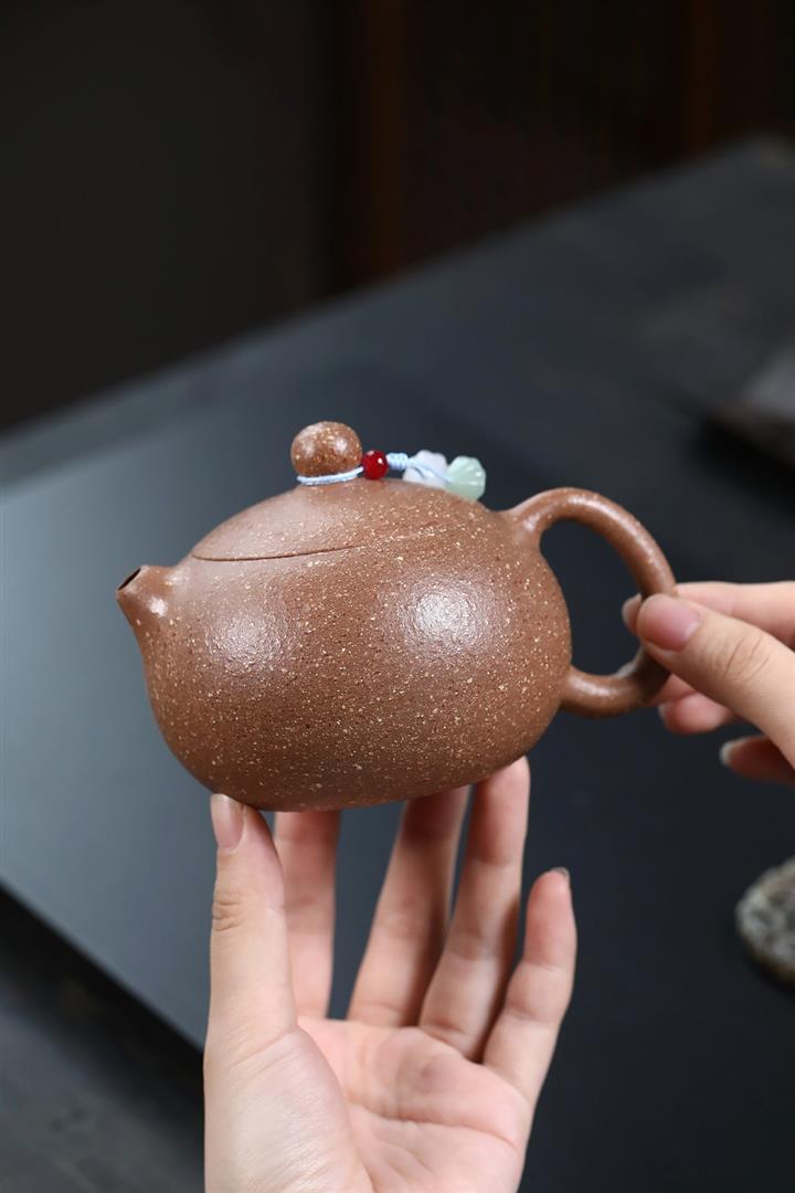【作品介紹】此款壺形線條流暢,壺把,壺嘴,壺身壹氣呵成栩栩如生,是收藏把玩的好壺,泥料色澤古樸典雅,日久使用,漸露鋒芒,養成變化快,溫潤莊重,用其泡茶,使用的年代久,壺身就溫潤,泡出來的茶湯也就醇郁芳馨。