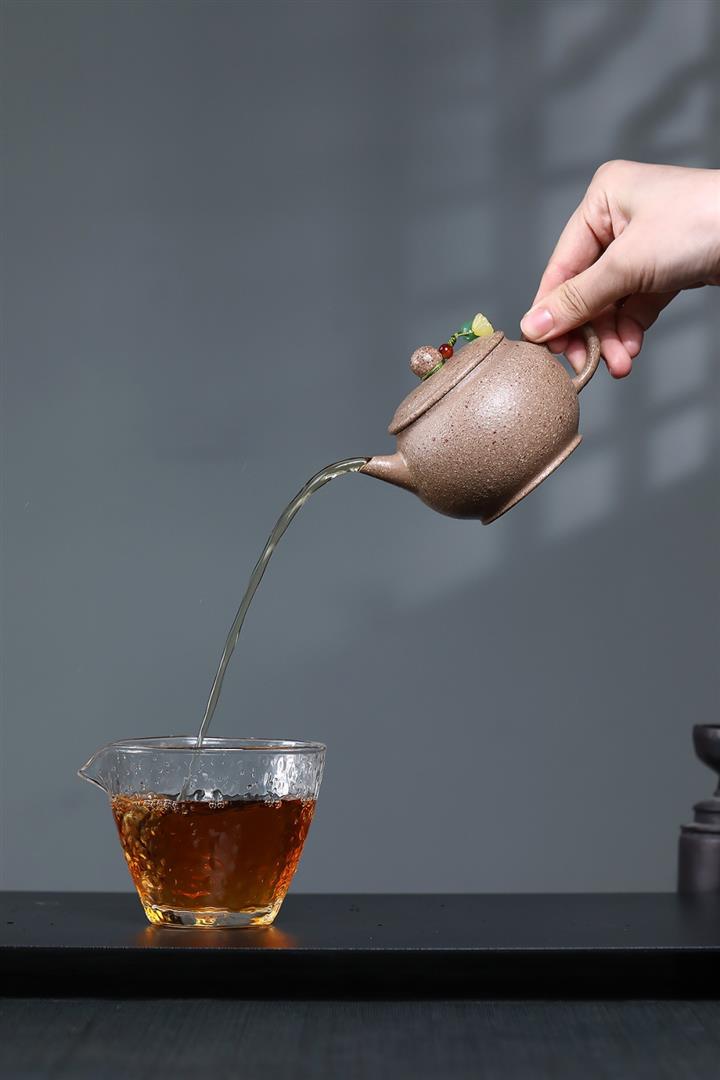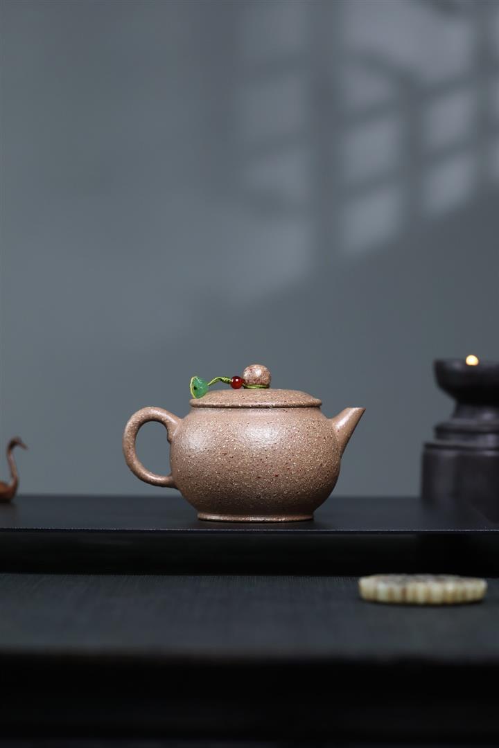 【泥料特點】砂土氣重,似淳實農民,日久使用,漸露鋒芒,養成變化,溫潤莊重。紫砂是壹種雙重氣孔結構的多孔性材質,氣孔微細,密度高。用紫砂壺沏茶,不失原味,且香不渙散,得茶之真香真味。紫砂使用越久,壺身色澤越發光亮照人,氣韻溫雅。紫砂壺長久使用器身會因撫摸擦拭,變得越發溫潤光澤。