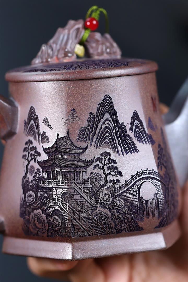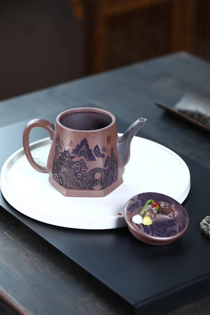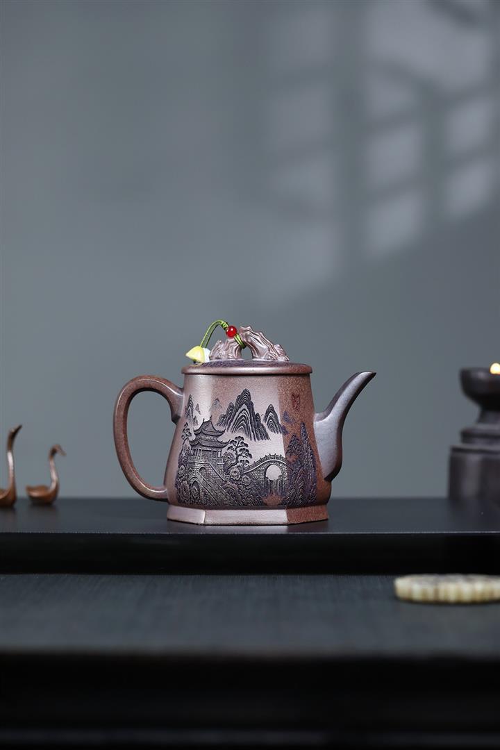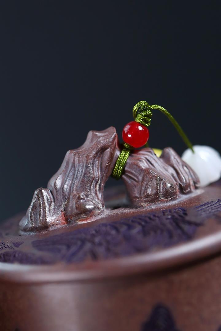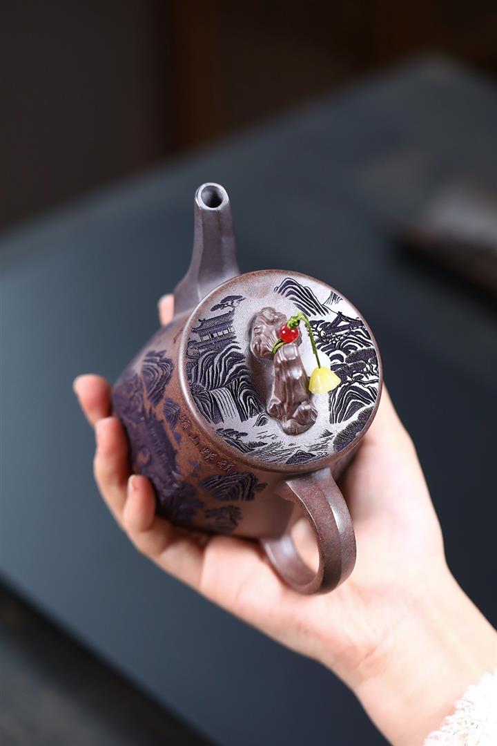 原礦紫泥刻繪石瓢紫砂壺POT4752