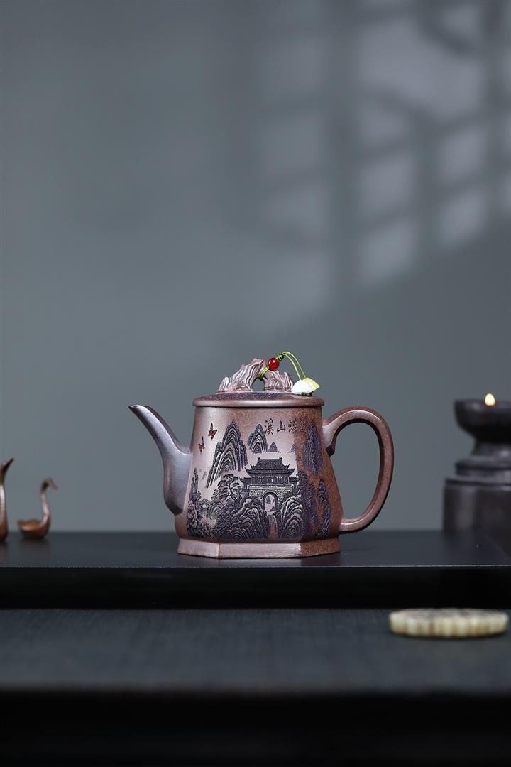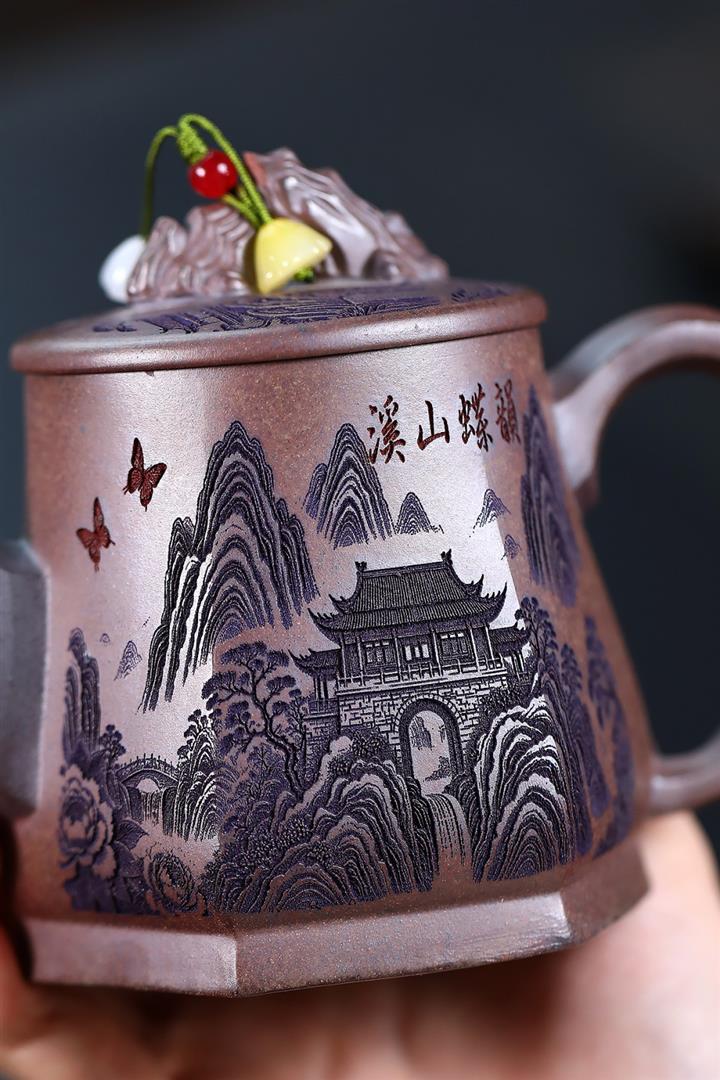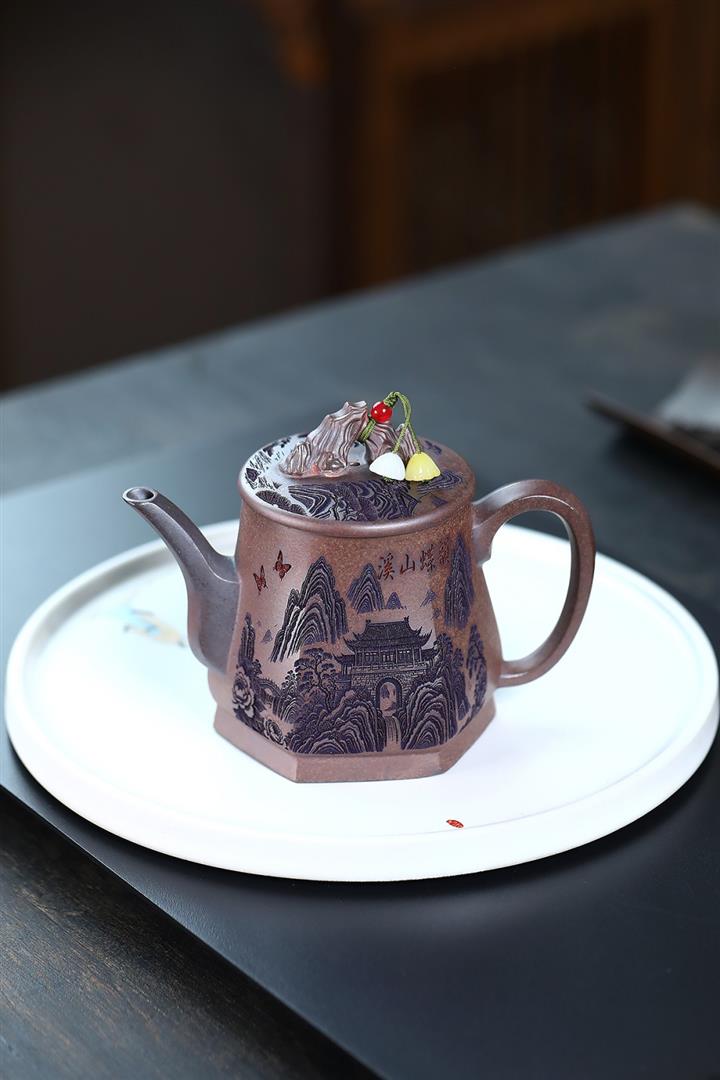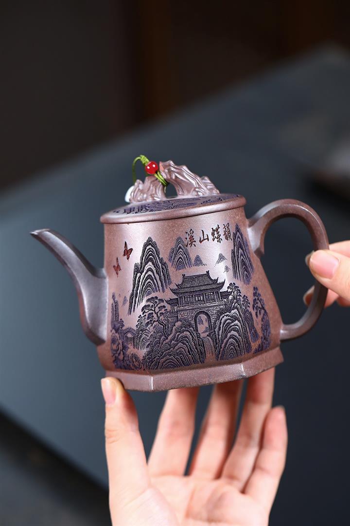 210cc原礦胭脂段泥柴燒溪山蝶韻茶壺POT8614