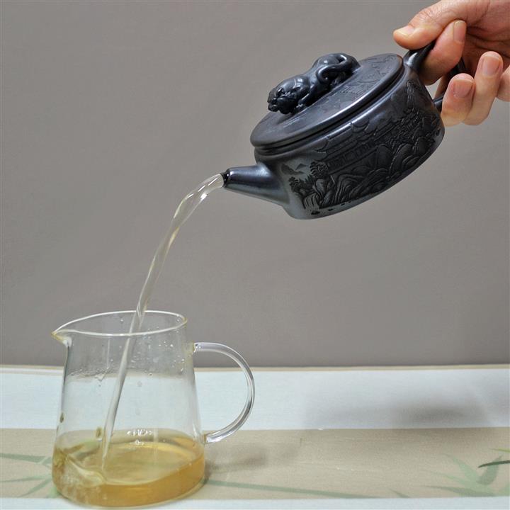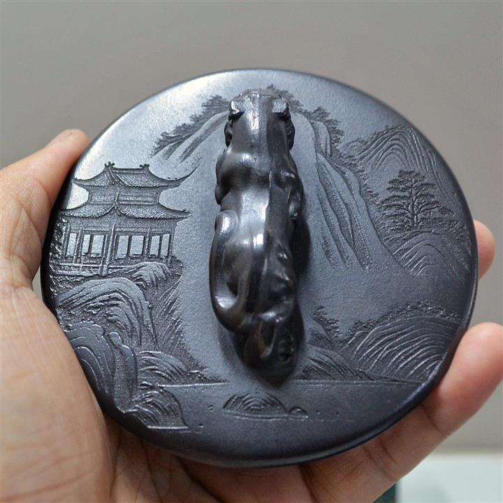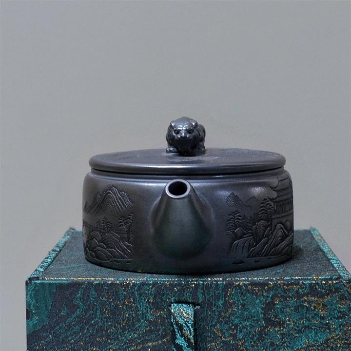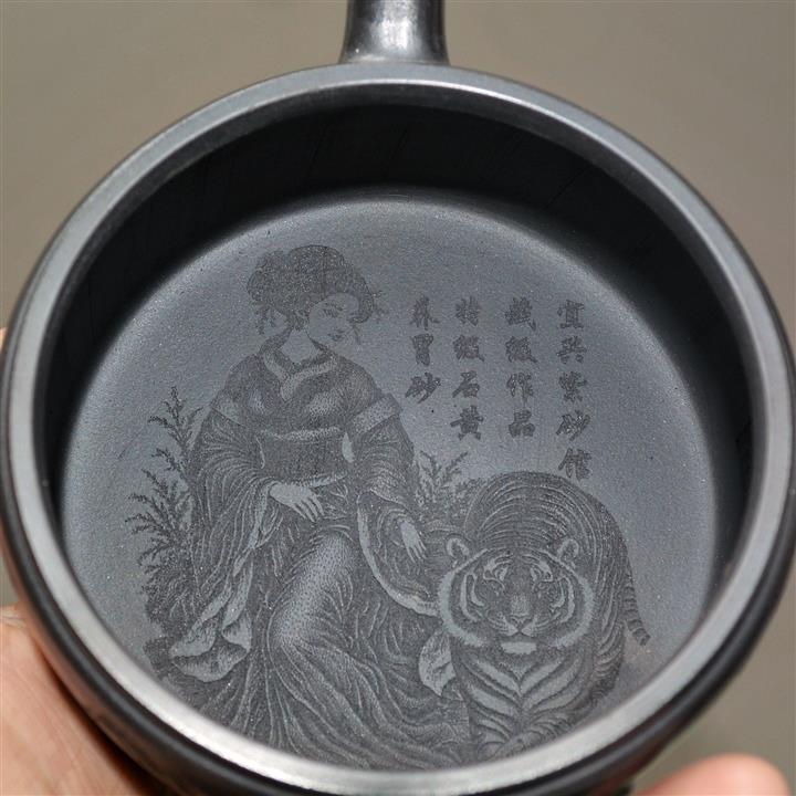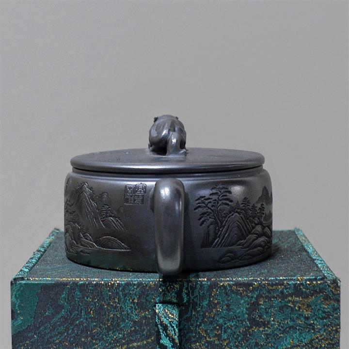 原礦紫泥純手工刻繪觀滄海漢瓦壺紫砂壺200cc pot3733