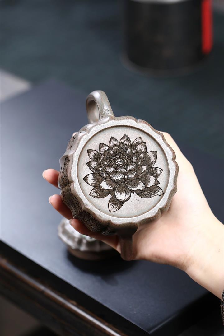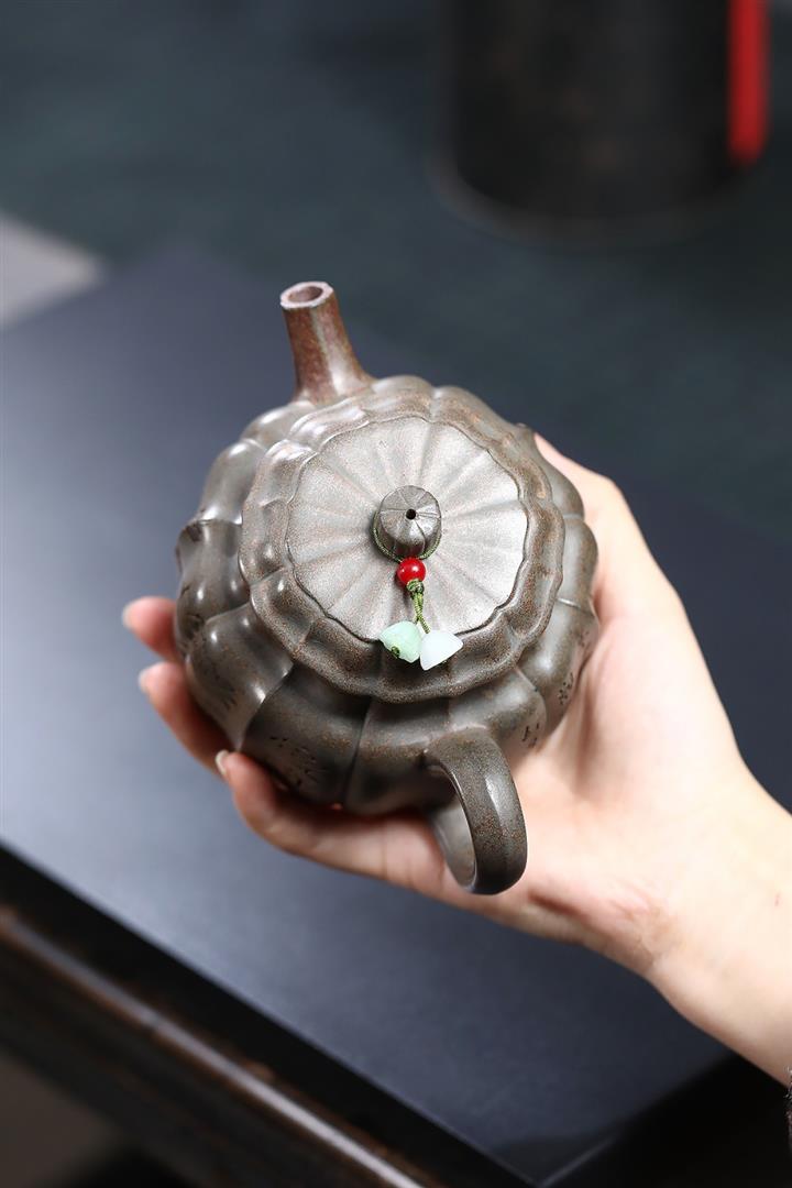 330CC原礦沈香泥柴燒筋紋蓮華茶壺POT8644