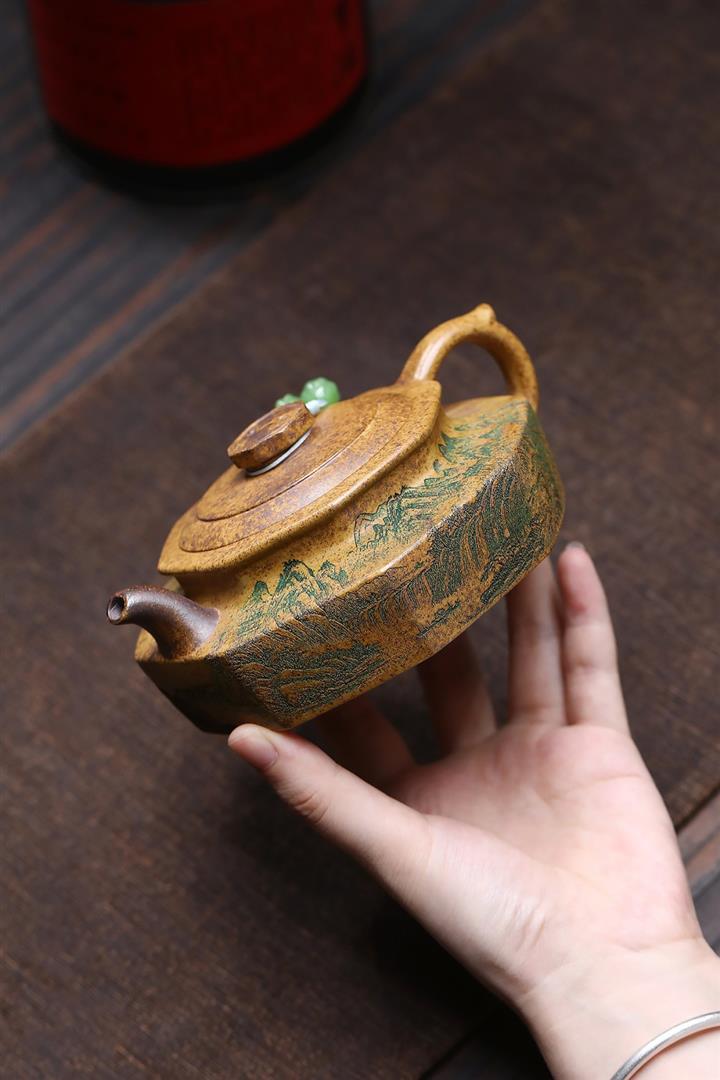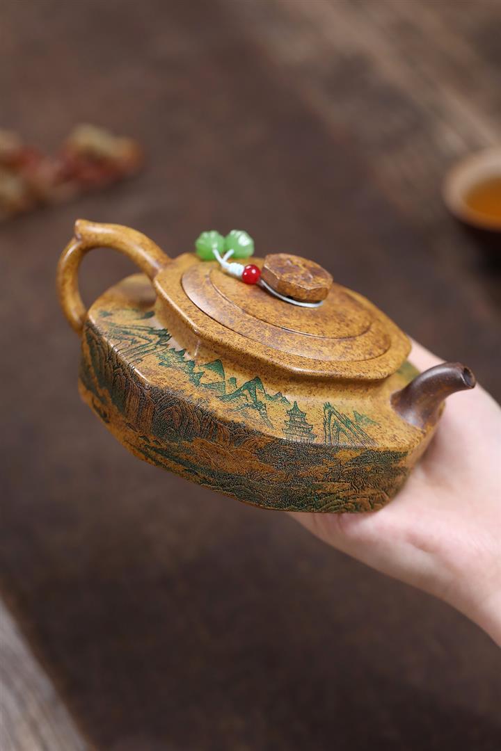 原礦大紅袍灑金四方漢鐸茶壺POT6893