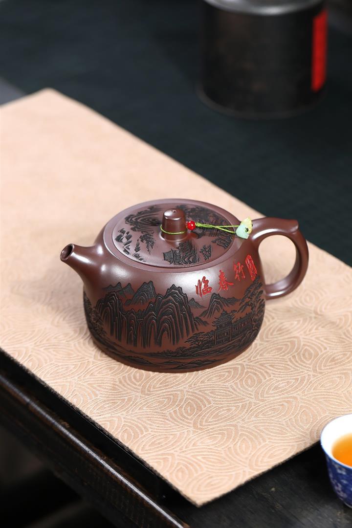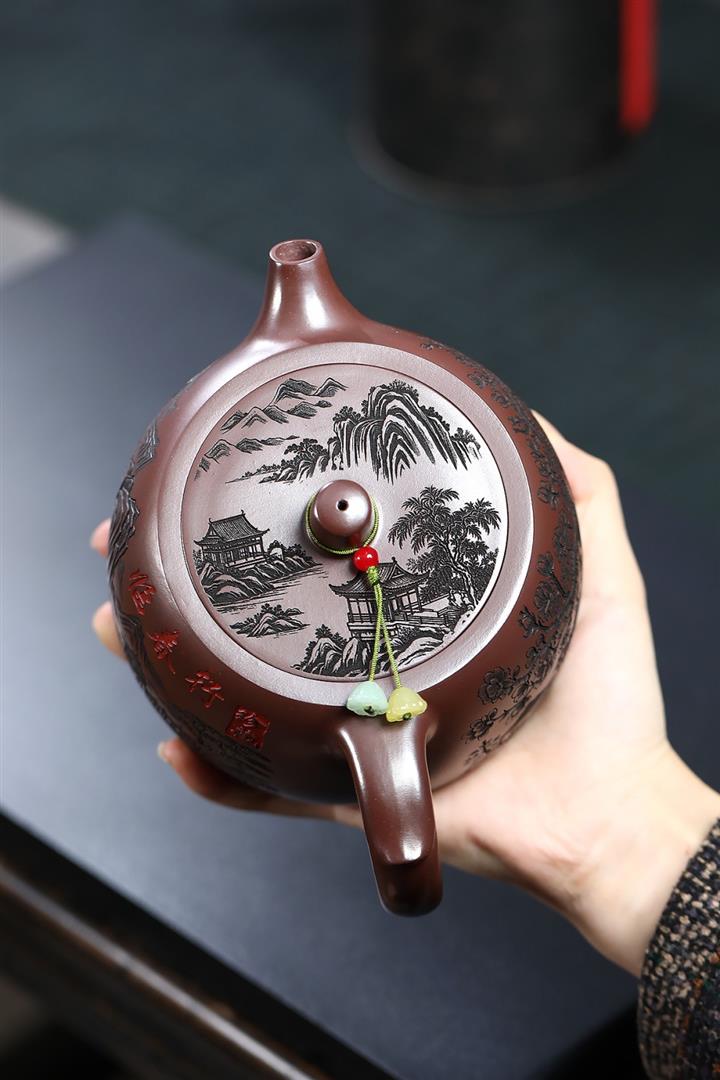 【作品介紹】此款壺形線條流暢,壺把,壺嘴,壺身壹氣呵成栩栩如生,是收藏把玩的好壺,泥料色澤古樸典雅,日久使用,漸露鋒芒,養成變化快,溫潤莊重,用其泡茶,使用的年代久,壺身就溫潤,泡出來的茶湯也就醇郁芳馨。