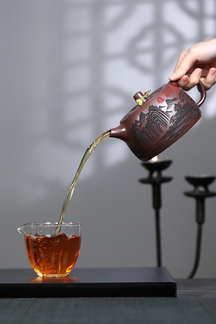 【泥料特點】砂土氣重,似淳實農民,日久使用,漸露鋒芒,養成變化,溫潤莊重。紫砂是壹種雙重氣孔結構的多孔性材質,氣孔微細,密度高。用紫砂壺沏茶,不失原味,且香不渙散,得茶之真香真味。紫砂使用越久,壺身色澤越發光亮照人,氣韻溫雅。紫砂壺長久使用器身會因撫摸擦拭,變得越發溫潤光澤。