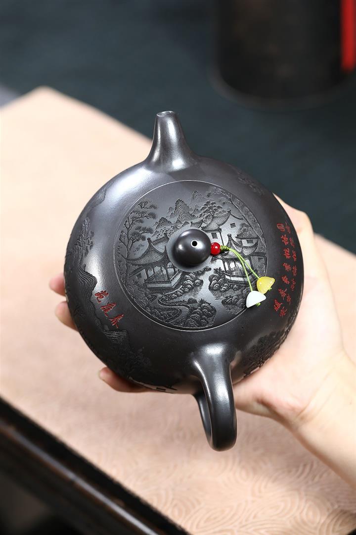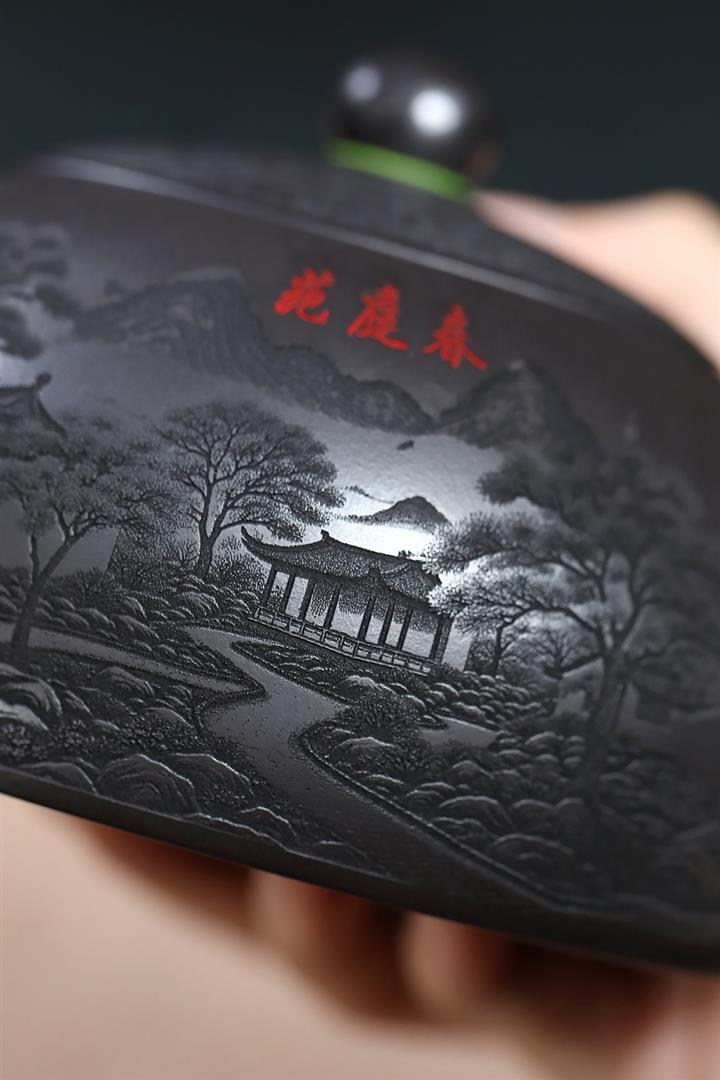 【作品介紹】此款壺形線條流暢,壺把,壺嘴,壺身壹氣呵成栩栩如生,是收藏把玩的好壺,泥料色澤古樸典雅,日久使用,漸露鋒芒,養成變化快,溫潤莊重,用其泡茶,使用的年代久,壺身就溫潤,泡出來的茶湯也就醇郁芳馨。