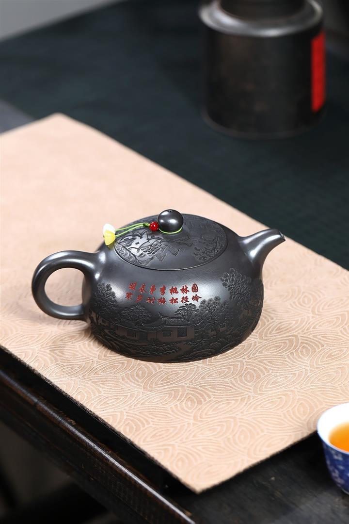 330cc原礦綠泥竹林隱士竹段茶壺POT8528