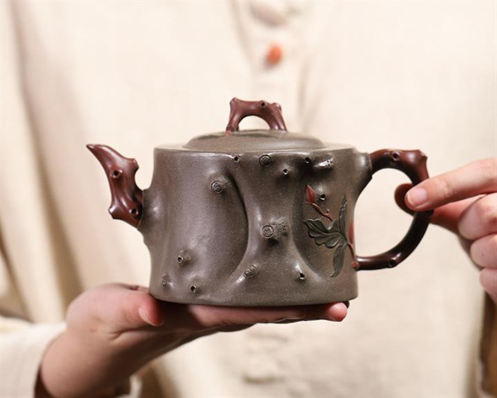 【泥料特點】砂土氣重,似淳實農民,日久使用,漸露鋒芒,養成變化,溫潤莊重。紫砂是壹種雙重氣孔結構的多孔性材質,氣孔微細,密度高。用紫砂壺沏茶,不失原味,且香不渙散,得茶之真香真味。紫砂使用越久,壺身色澤越發光亮照人,氣韻溫雅。紫砂壺長久使用器身會因撫摸擦拭,變得越發溫潤光澤。