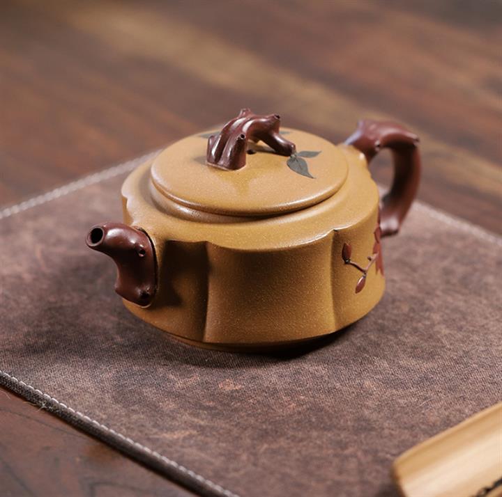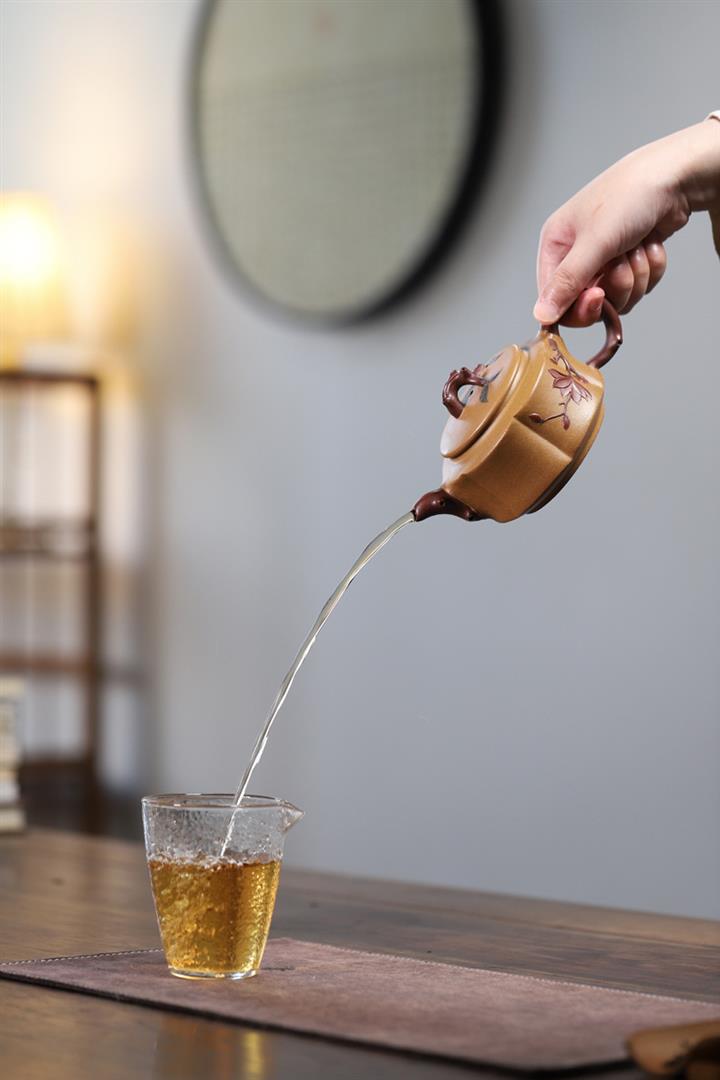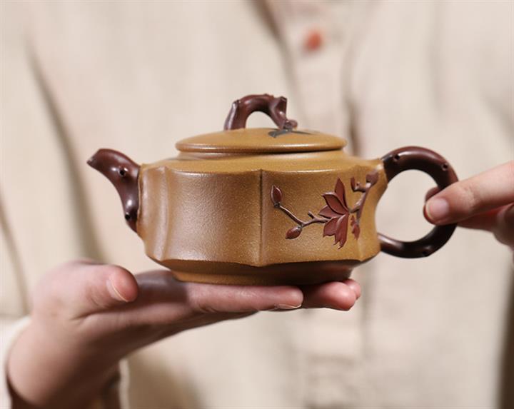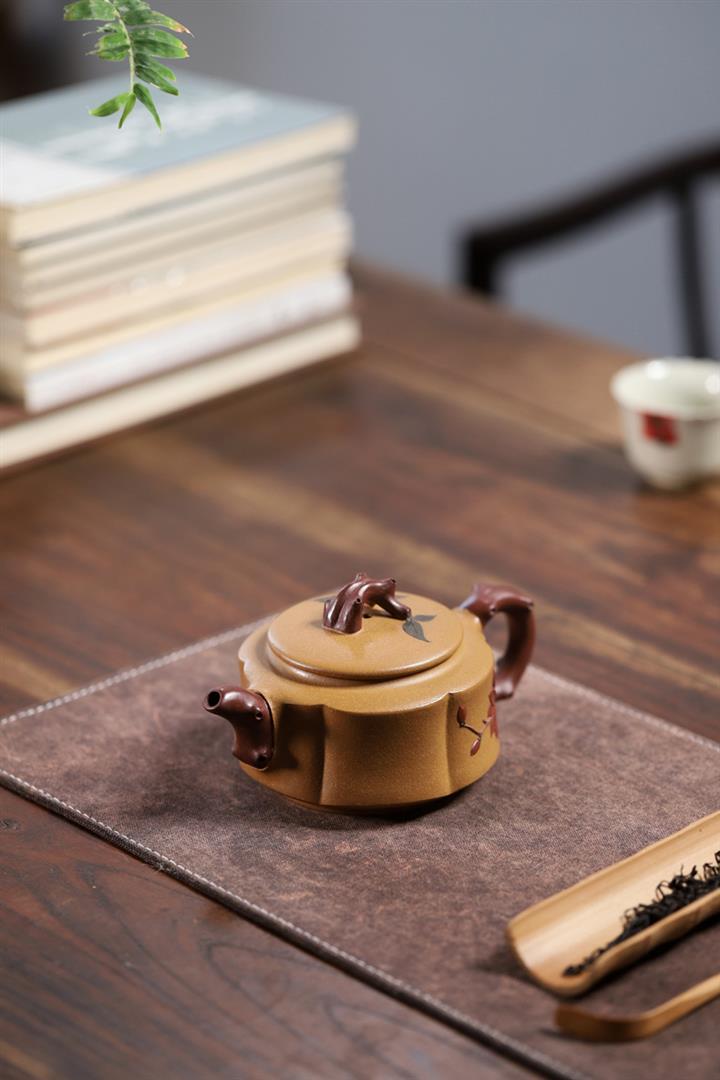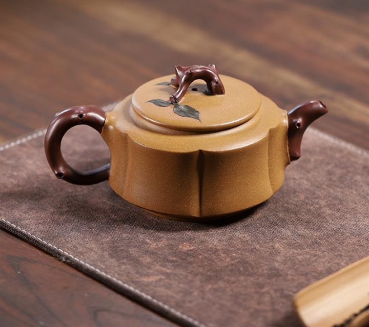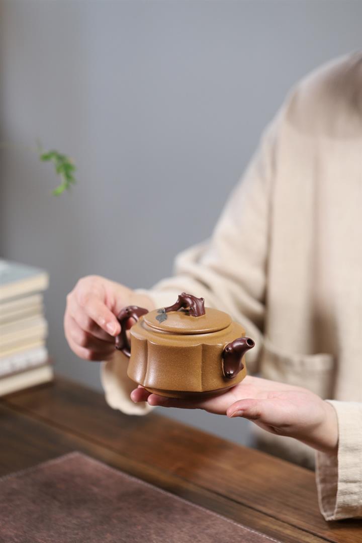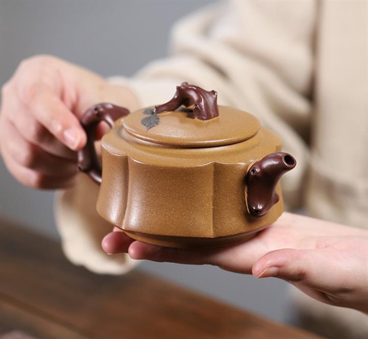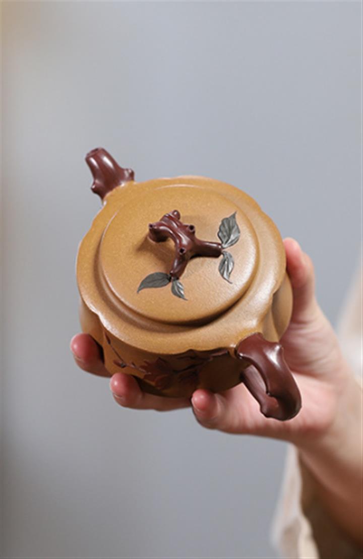 【泥料特點】砂土氣重,似淳實農民,日久使用,漸露鋒芒,養成變化,溫潤莊重。紫砂是壹種雙重氣孔結構的多孔性材質,氣孔微細,密度高。用紫砂壺沏茶,不失原味,且香不渙散,得茶之真香真味。紫砂使用越久,壺身色澤越發光亮照人,氣韻溫雅。紫砂壺長久使用器身會因撫摸擦拭,變得越發溫潤光澤。