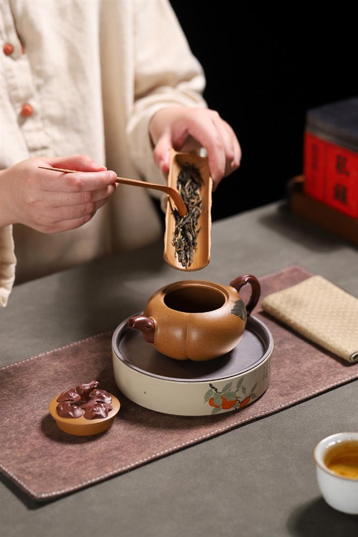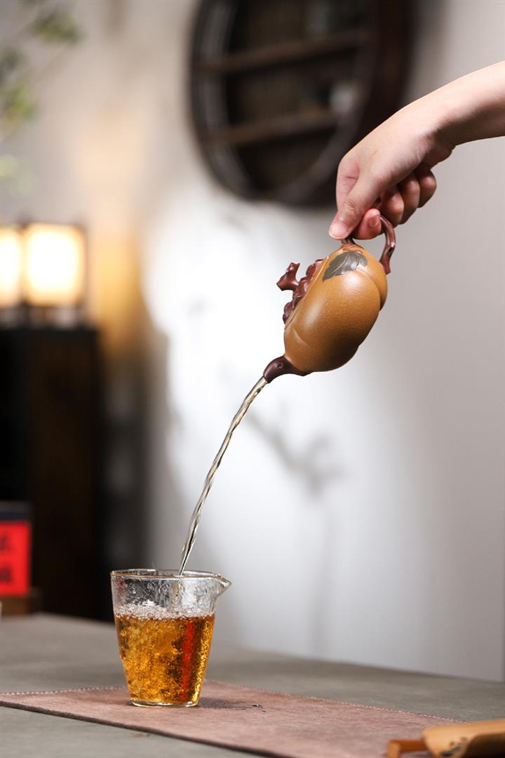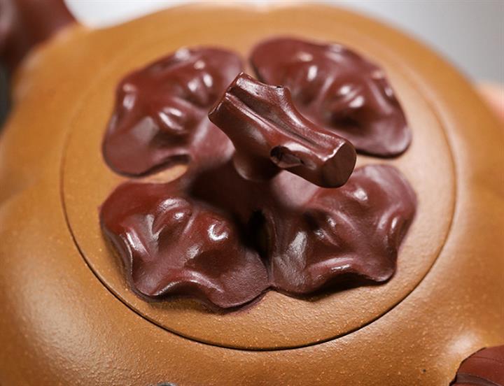 【泥料特點】砂土氣重,似淳實農民,日久使用,漸露鋒芒,養成變化,溫潤莊重。紫砂是壹種雙重氣孔結構的多孔性材質,氣孔微細,密度高。用紫砂壺沏茶,不失原味,且香不渙散,得茶之真香真味。紫砂使用越久,壺身色澤越發光亮照人,氣韻溫雅。紫砂壺長久使用器身會因撫摸擦拭,變得越發溫潤光澤。