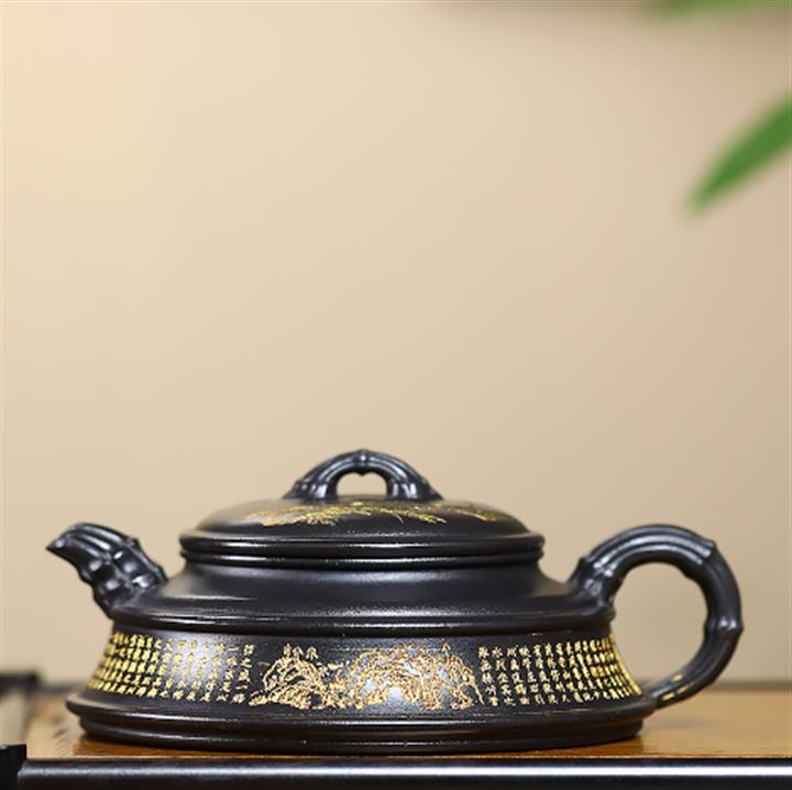240cc玄鐵石黃雙線竹段蘭亭序集茶壺POT8271