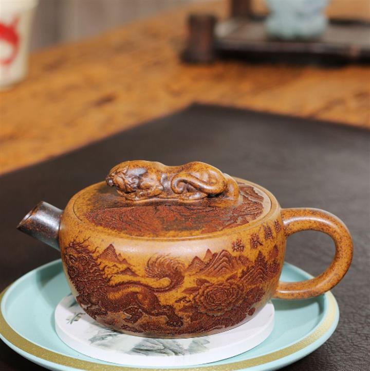 240cc龍骨金砂麒麟獻瑞伏虎漢瓦茶壺POT8276