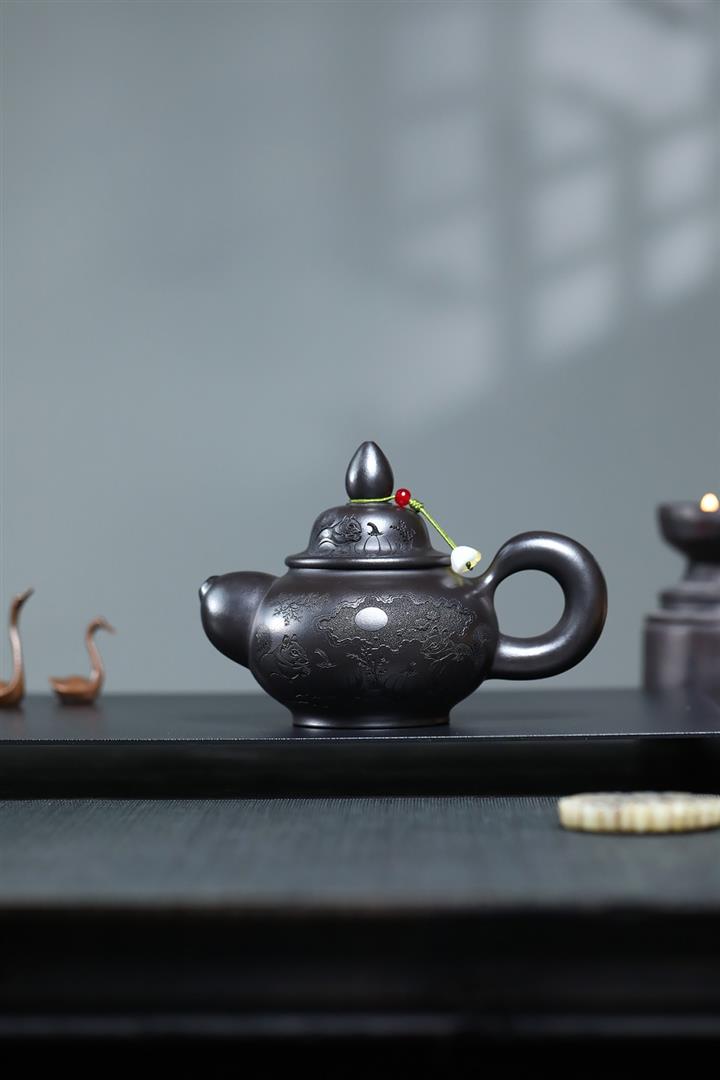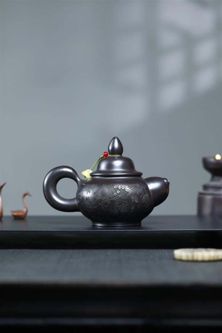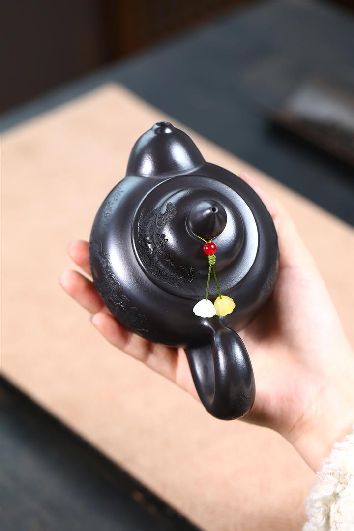 【作品介紹】此款壺形線條流暢,壺把,壺嘴,壺身壹氣呵成栩栩如生,是收藏把玩的好壺,泥料色澤古樸典雅,日久使用,漸露鋒芒,養成變化快,溫潤莊重,用其泡茶,使用的年代久,壺身就溫潤,泡出來的茶湯也就醇郁芳馨。
