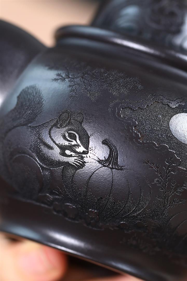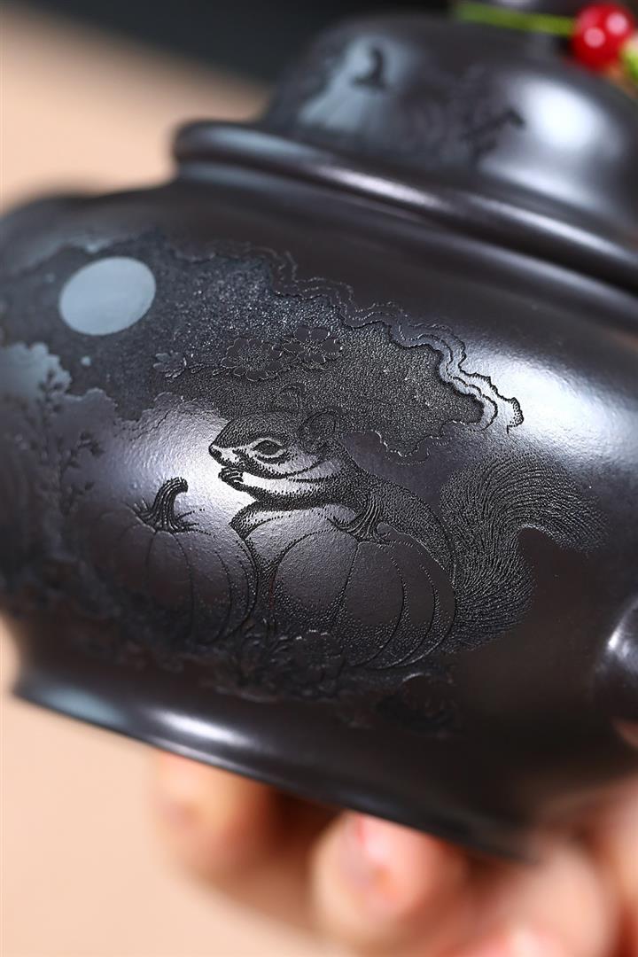 270cc原礦高溫沈香泥柴燒竹影茶壺POT8132