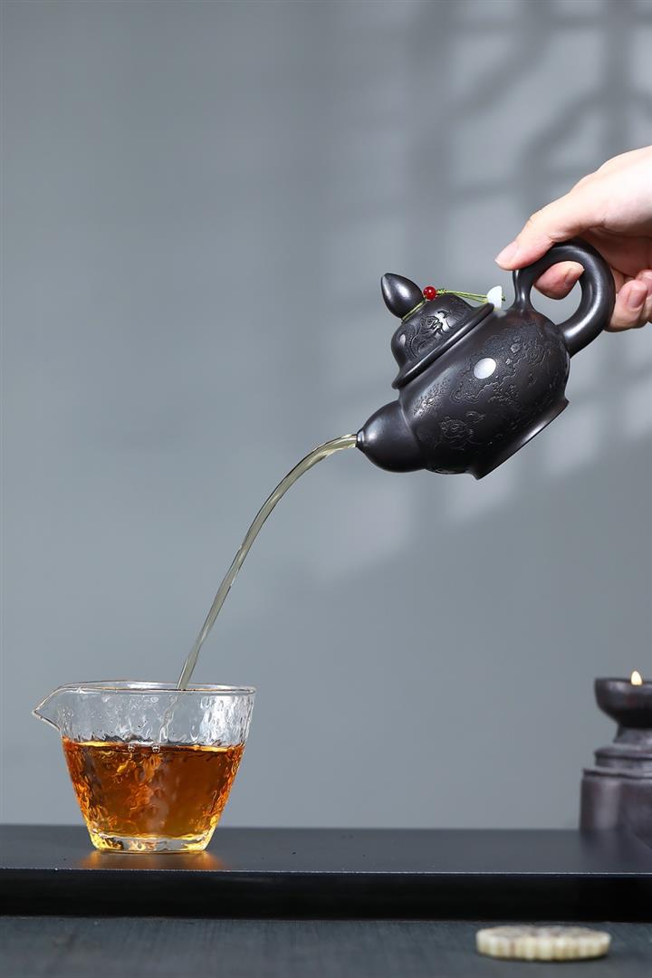 【泥料特點】砂土氣重,似淳實農民,日久使用,漸露鋒芒,養成變化,溫潤莊重。紫砂是壹種雙重氣孔結構的多孔性材質,氣孔微細,密度高。用紫砂壺沏茶,不失原味,且香不渙散,得茶之真香真味。紫砂使用越久,壺身色澤越發光亮照人,氣韻溫雅。紫砂壺長久使用器身會因撫摸擦拭,變得越發溫潤光澤。