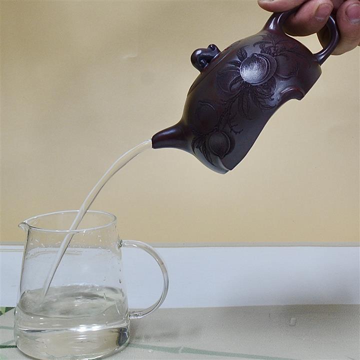 【泥料特點】砂土氣重,似淳實農民,日久使用,漸露鋒芒,養成變化,溫潤莊重。紫砂是壹種雙重氣孔結構的多孔性材質,氣孔微細,密度高。用紫砂壺沏茶,不失原味,且香不渙散,得茶之真香真味。紫砂使用越久,壺身色澤越發光亮照人,氣韻溫雅。紫砂壺長久使用器身會因撫摸擦拭,變得越發溫潤光澤。