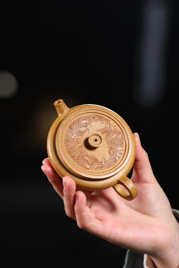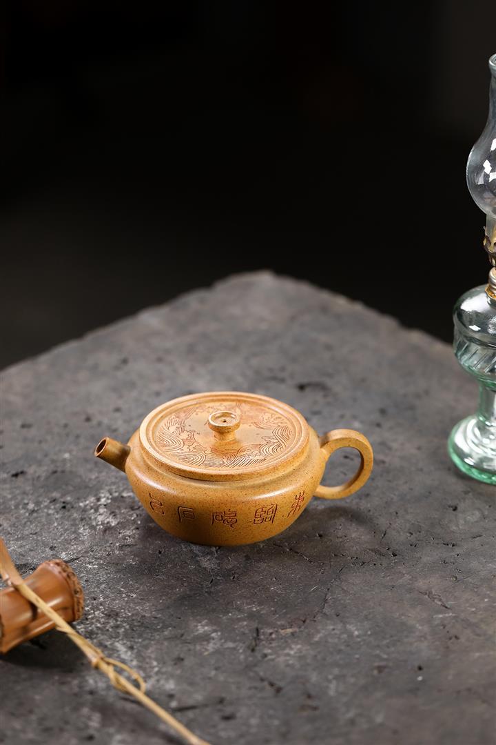 【作品介紹】此款壺形線條流暢,壺把,壺嘴,壺身壹氣呵成栩栩如生,是收藏把玩的好壺,泥料色澤古樸典雅,日久使用,漸露鋒芒,養成變化快,溫潤莊重,用其泡茶,使用的年代久,壺身就溫潤,泡出來的茶湯也就醇郁芳馨。