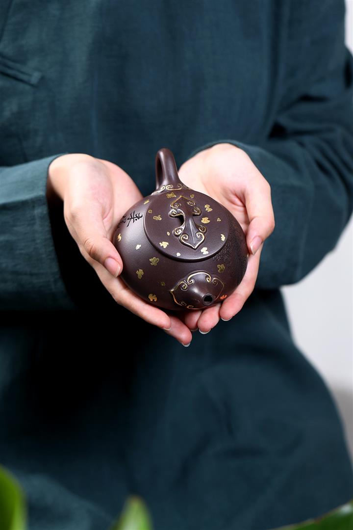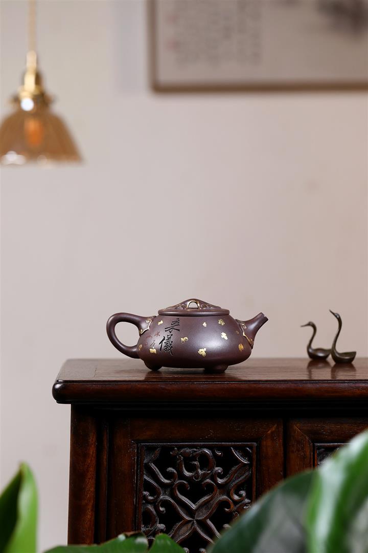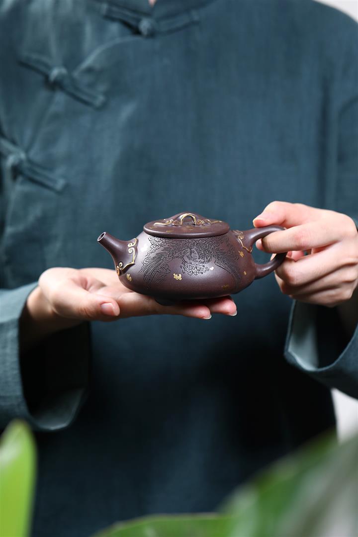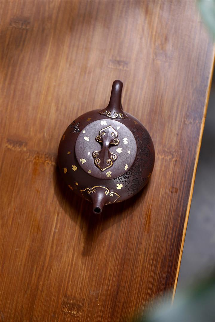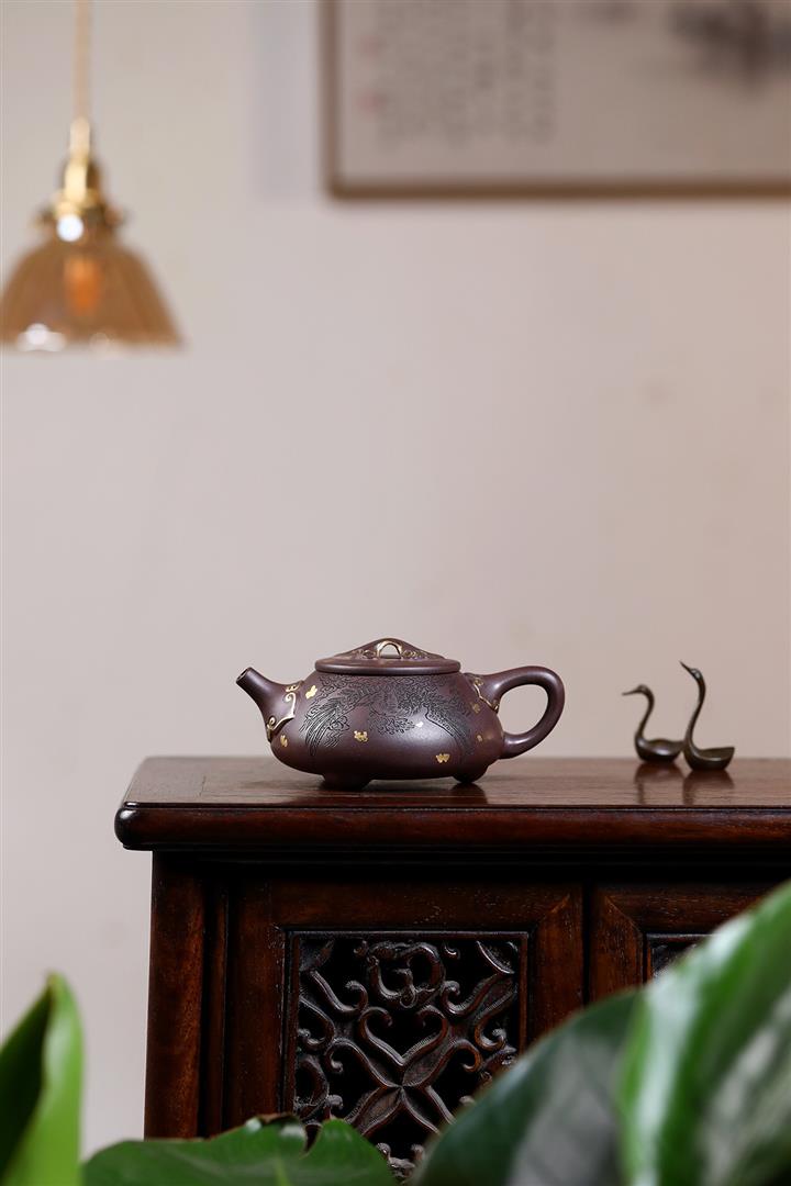 310cc百目紫泥金刻梅花西施茶壺POT8101