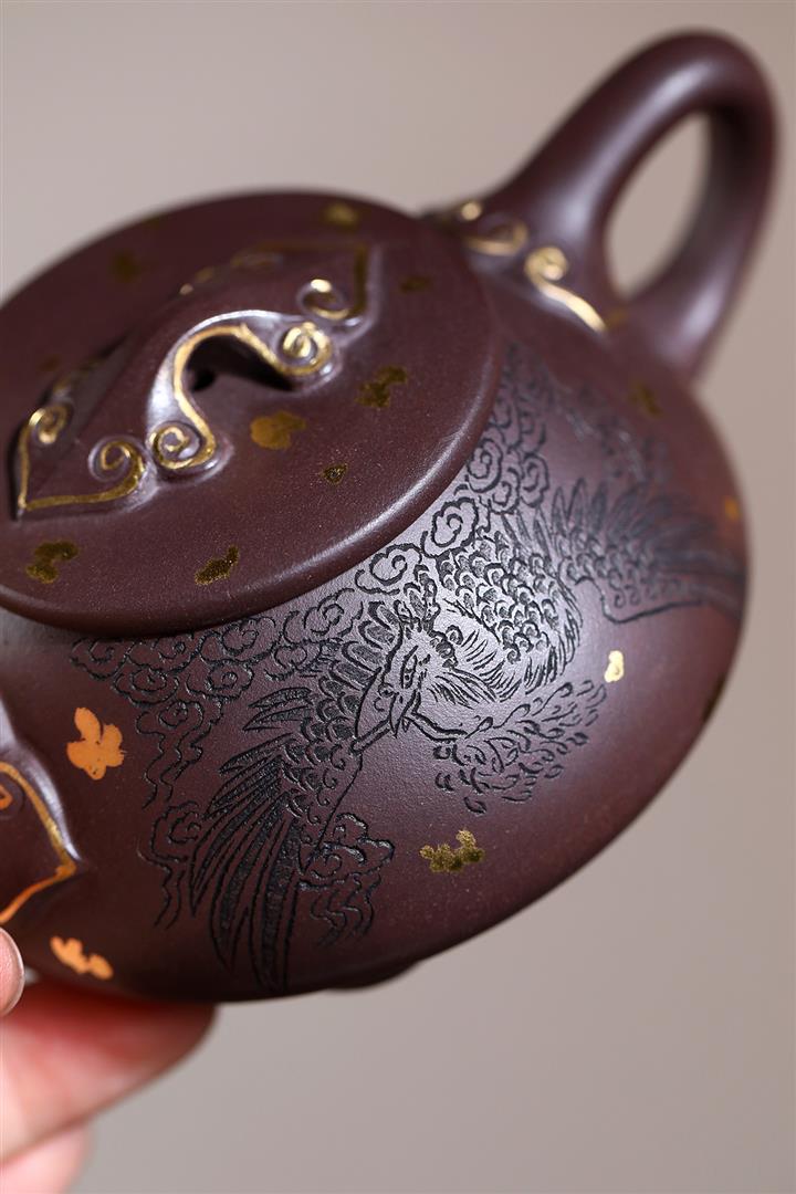 200cc原礦百目紫泥金刻明爐茶壺POT8100