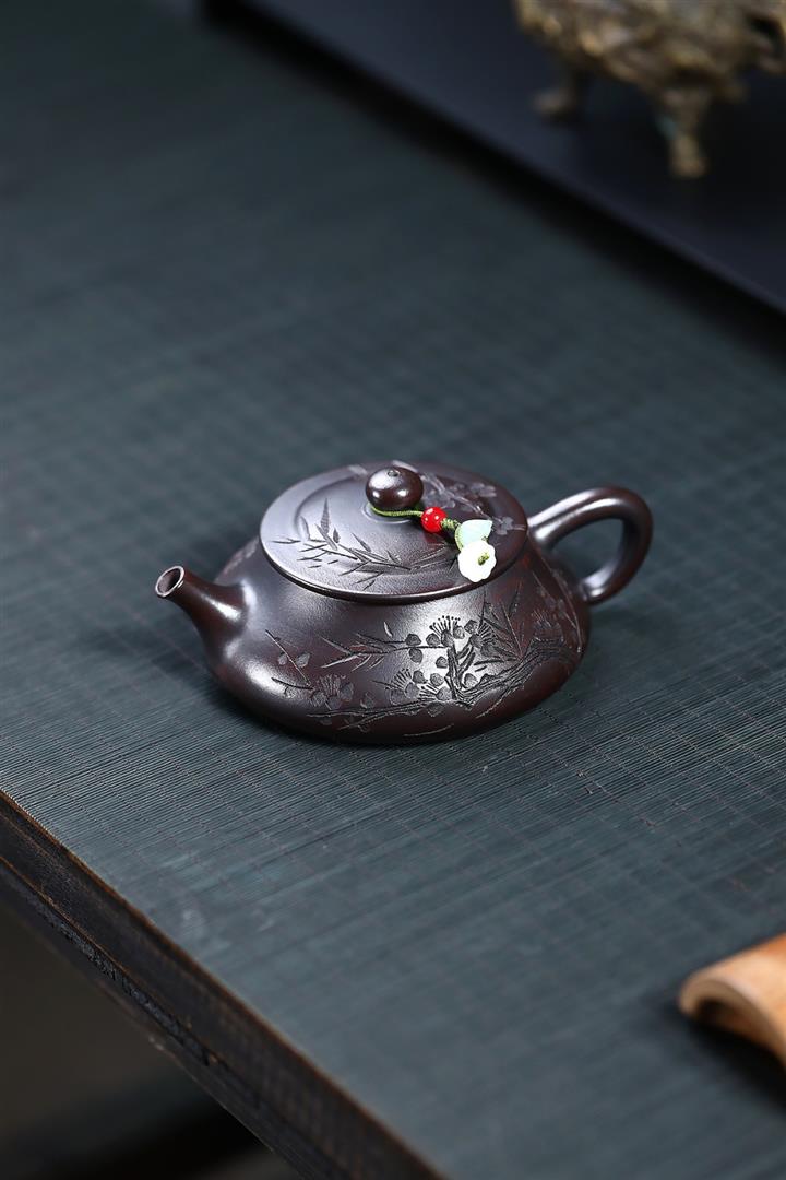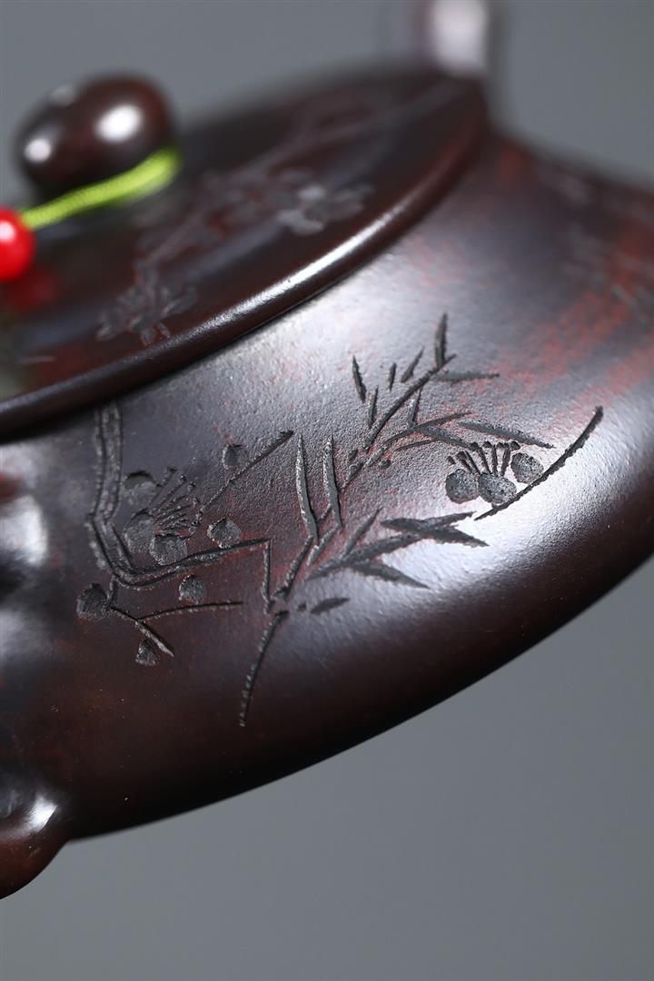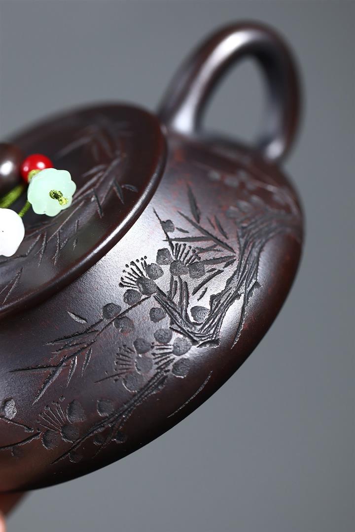 原礦龍血砂手工紅梅扁鼓茶壺POT6766