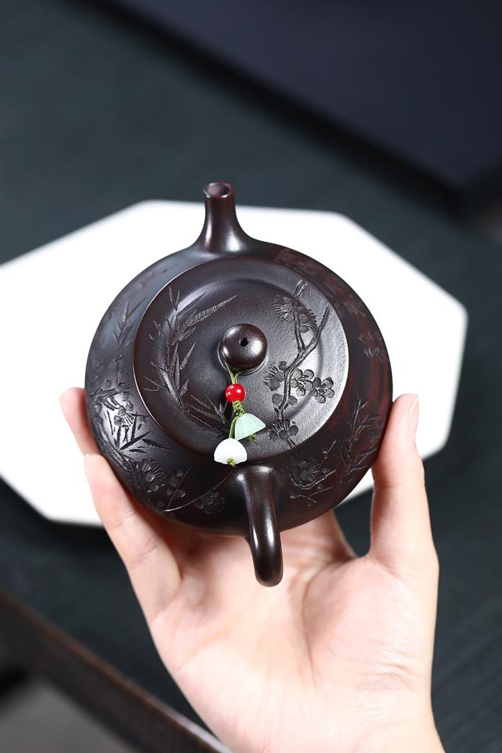 原礦大紅袍手工蓮花汲直茶壺POT6771