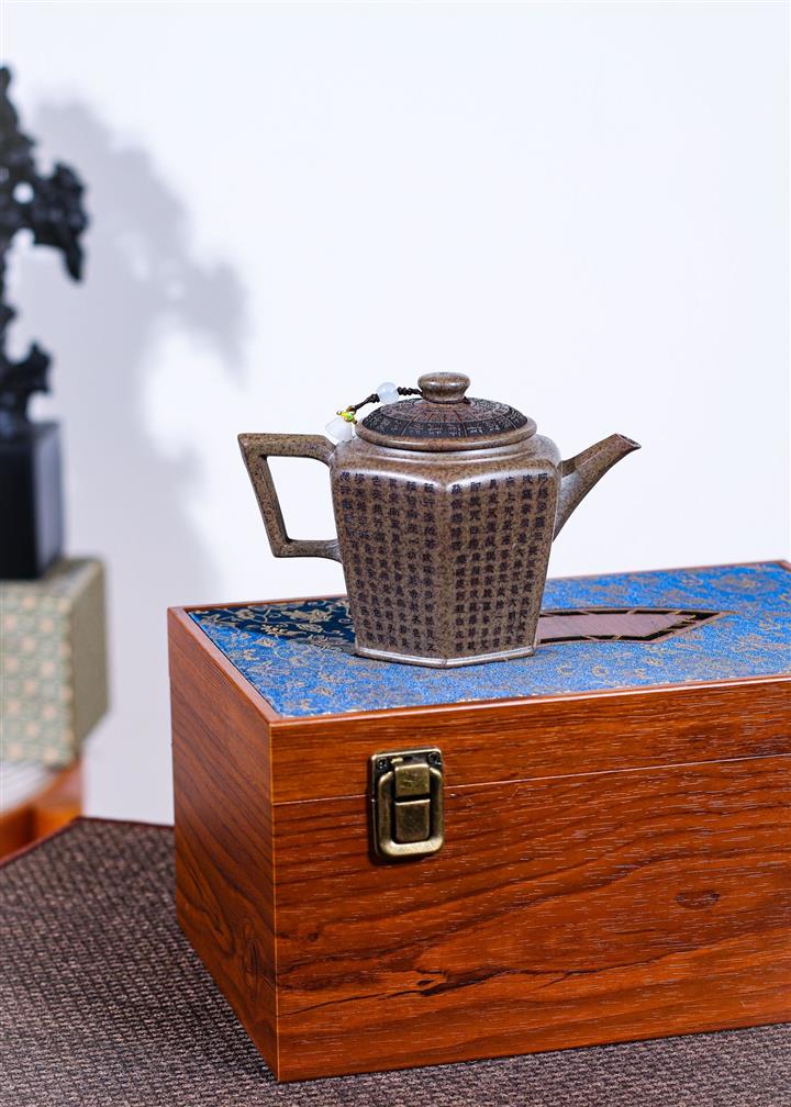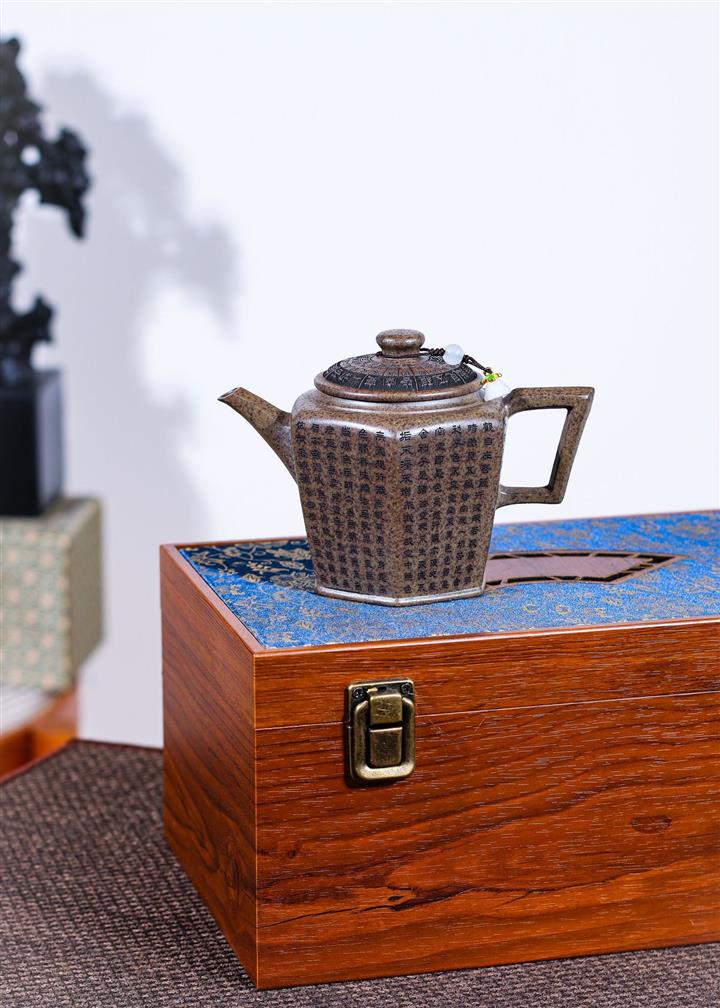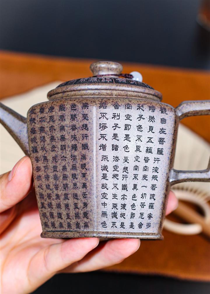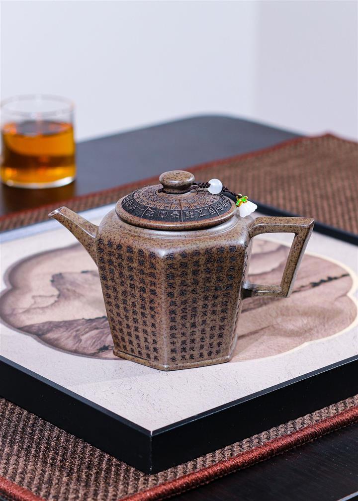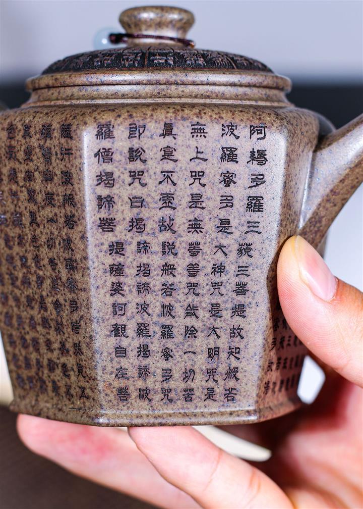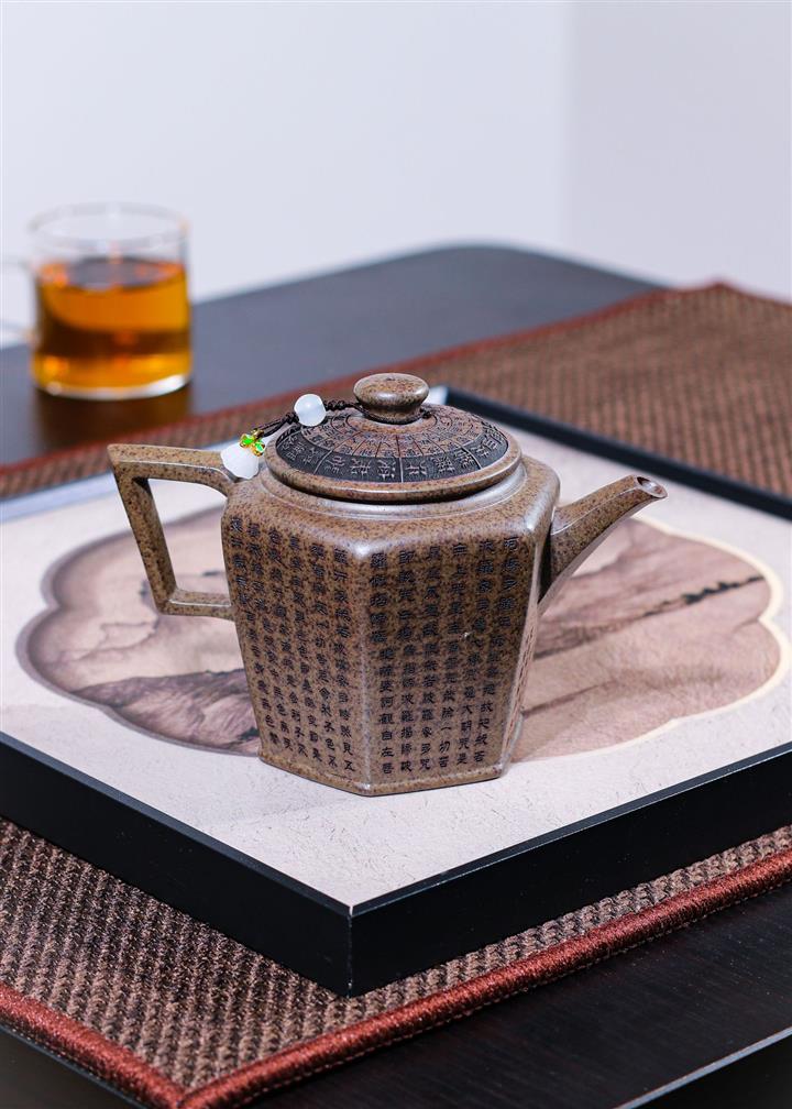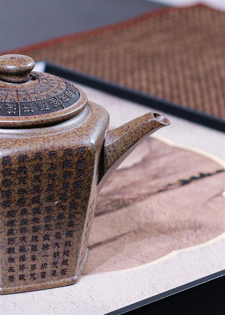 270cc原礦段泥柴燒六方宮燈手刻心經茶壺POT8756
