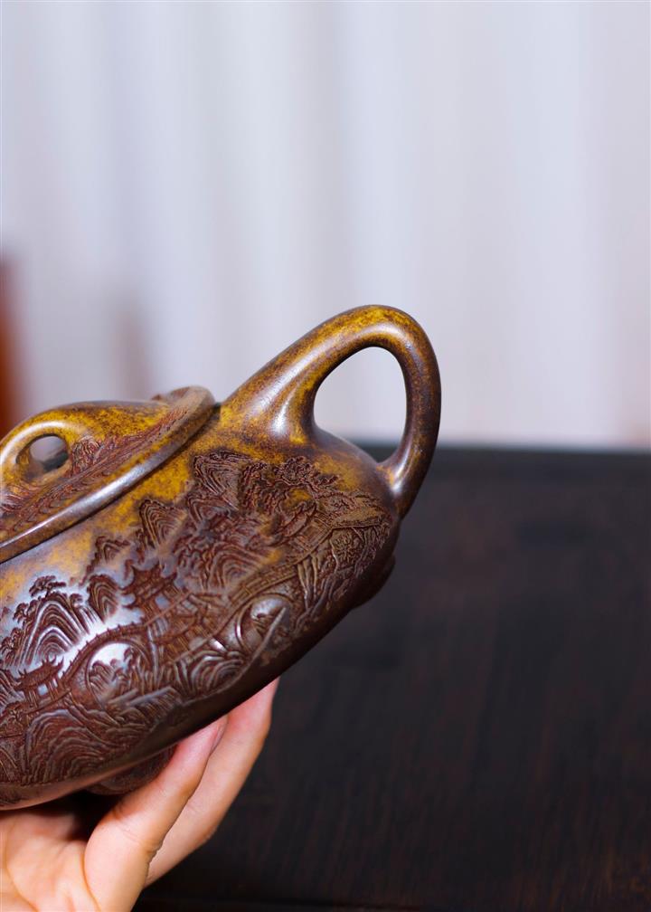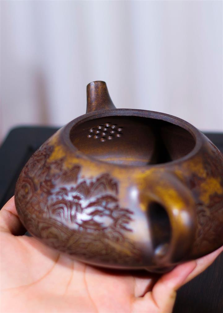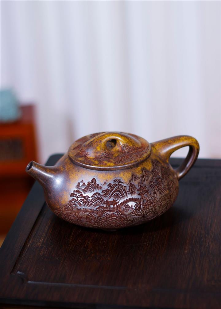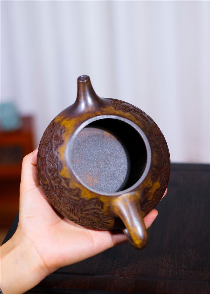 【作品介紹】此款壺形線條流暢,壺把,壺嘴,壺身壹氣呵成栩栩如生,是收藏把玩的好壺,泥料色澤古樸典雅,日久使用,漸露鋒芒,養成變化快,溫潤莊重,用其泡茶,使用的年代久,壺身就溫潤,泡出來的茶湯也就醇郁芳馨。