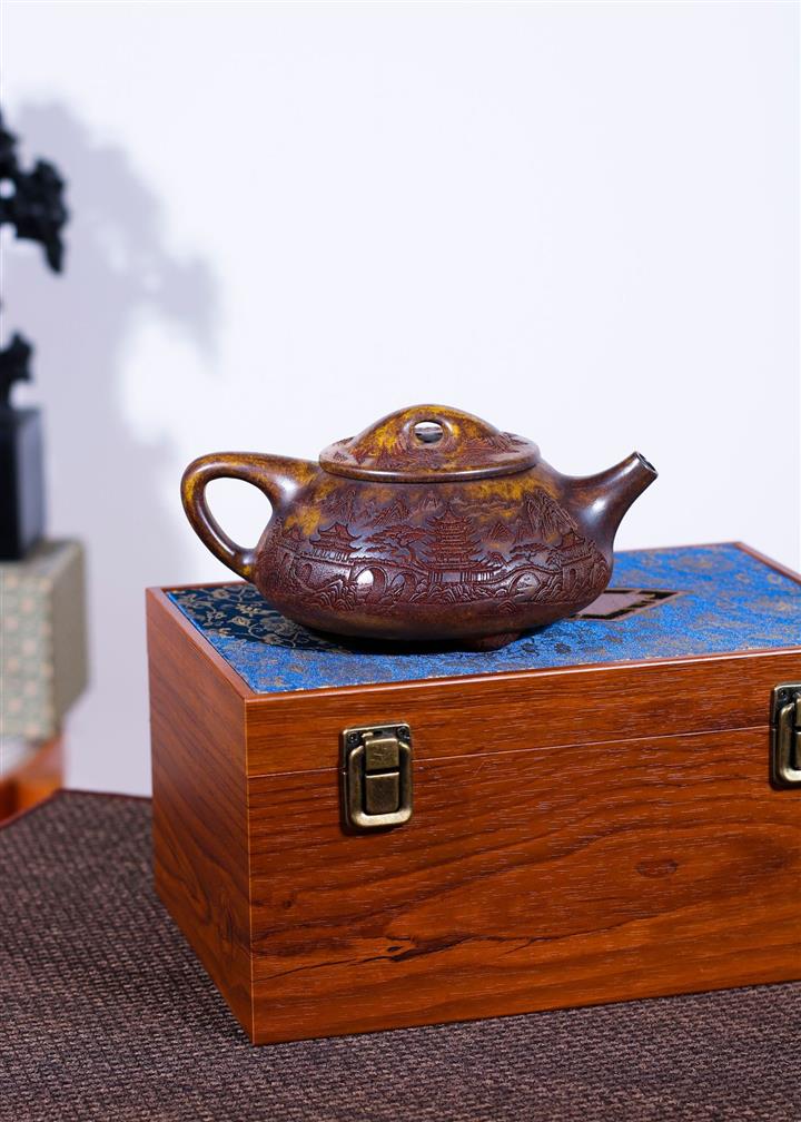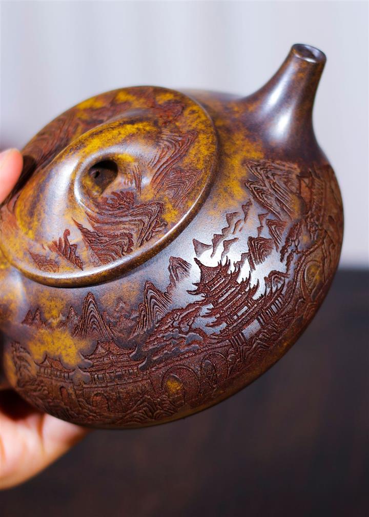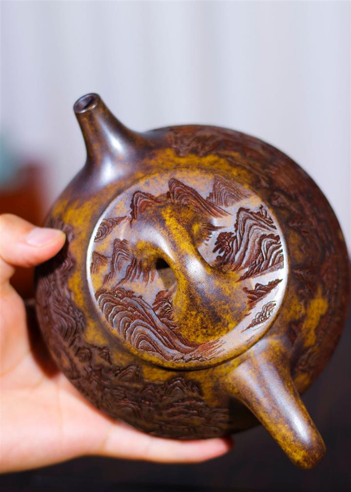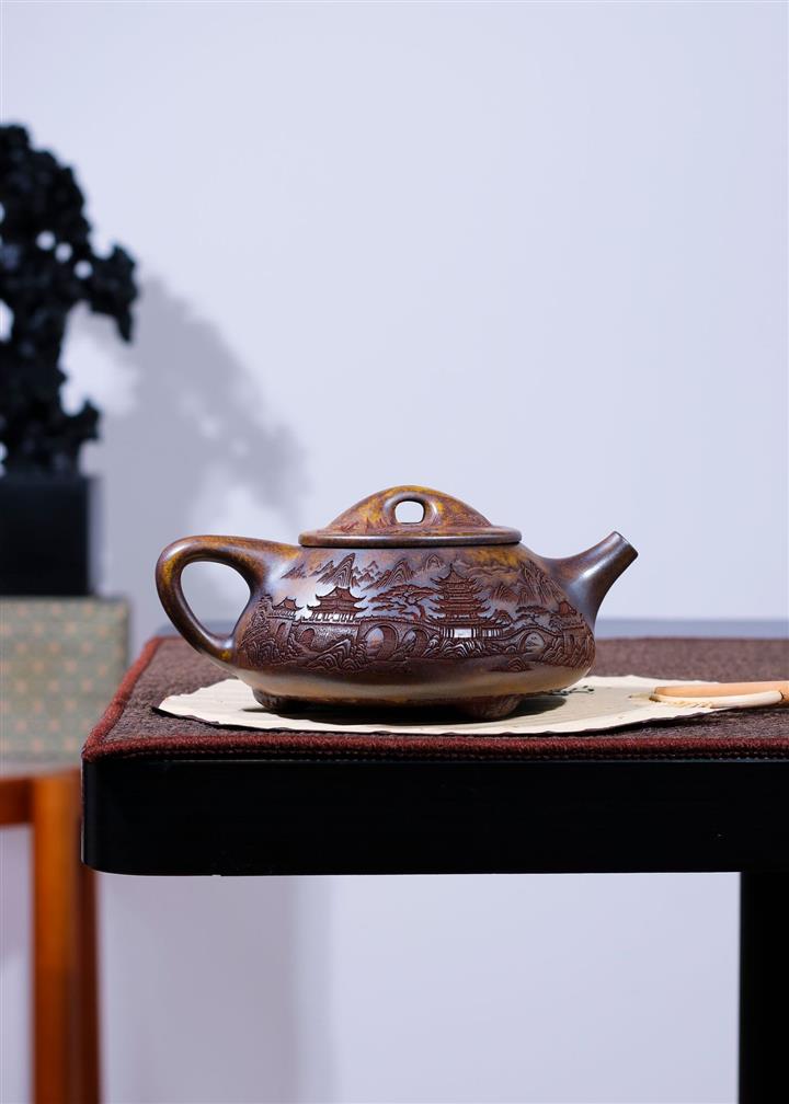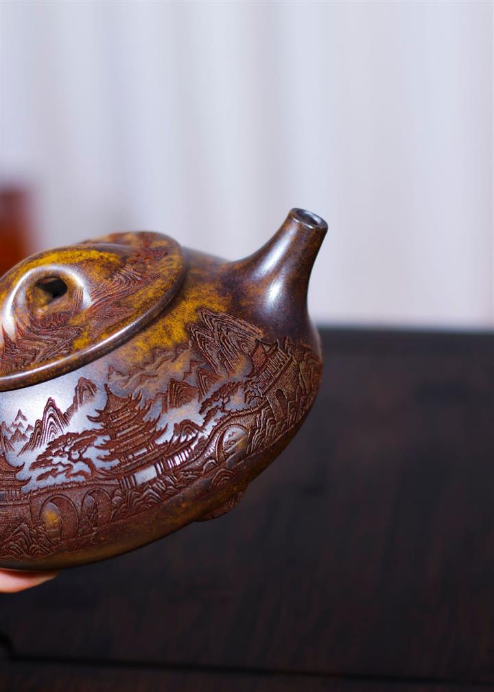 【作品介紹】此款壺形線條流暢,壺把,壺嘴,壺身壹氣呵成栩栩如生,是收藏把玩的好壺,泥料色澤古樸典雅,日久使用,漸露鋒芒,養成變化快,溫潤莊重,用其泡茶,使用的年代久,壺身就溫潤,泡出來的茶湯也就醇郁芳馨。