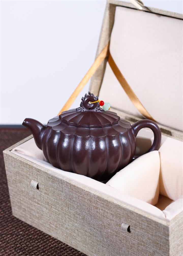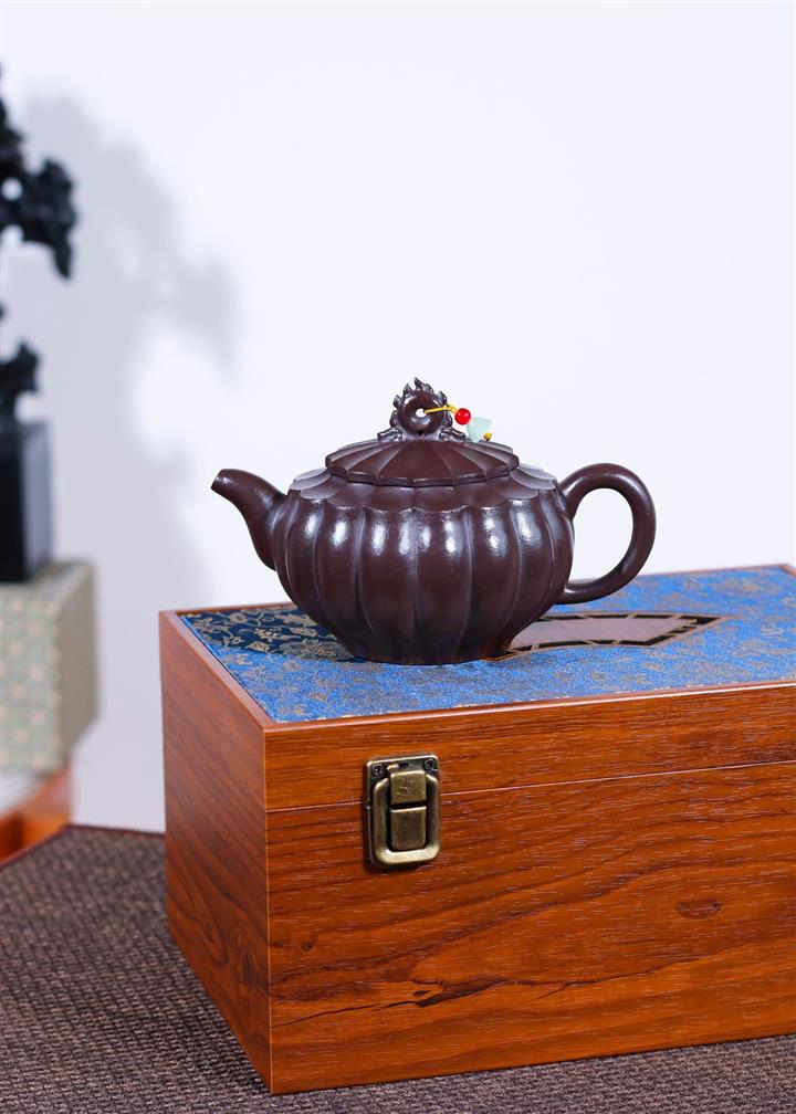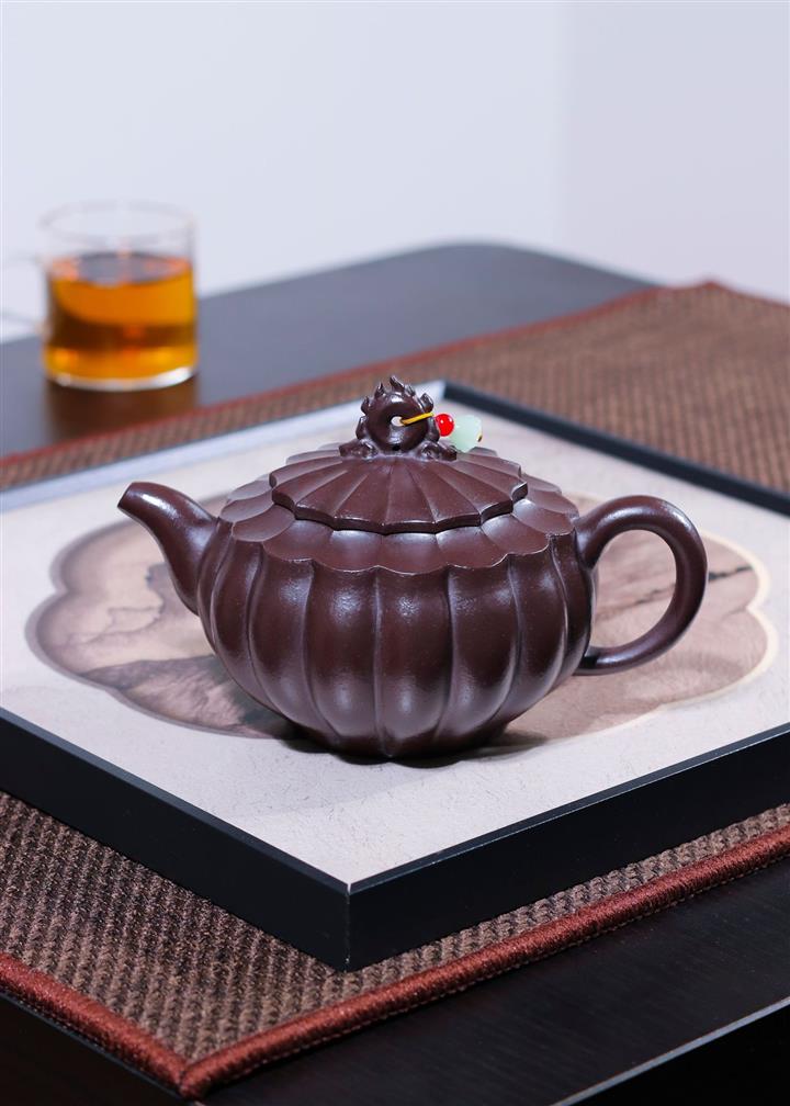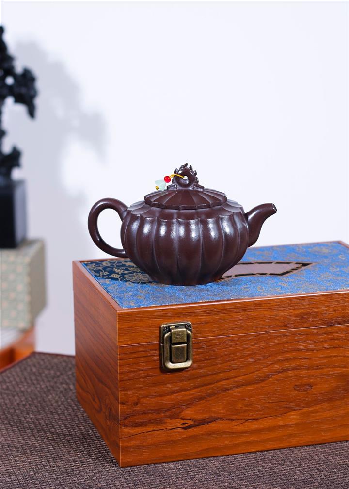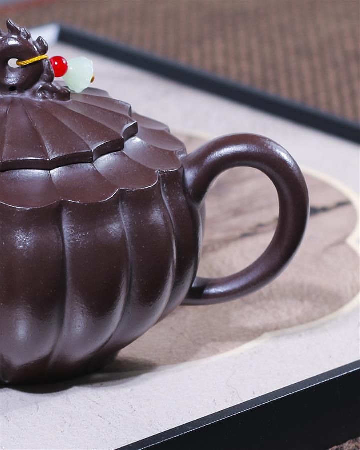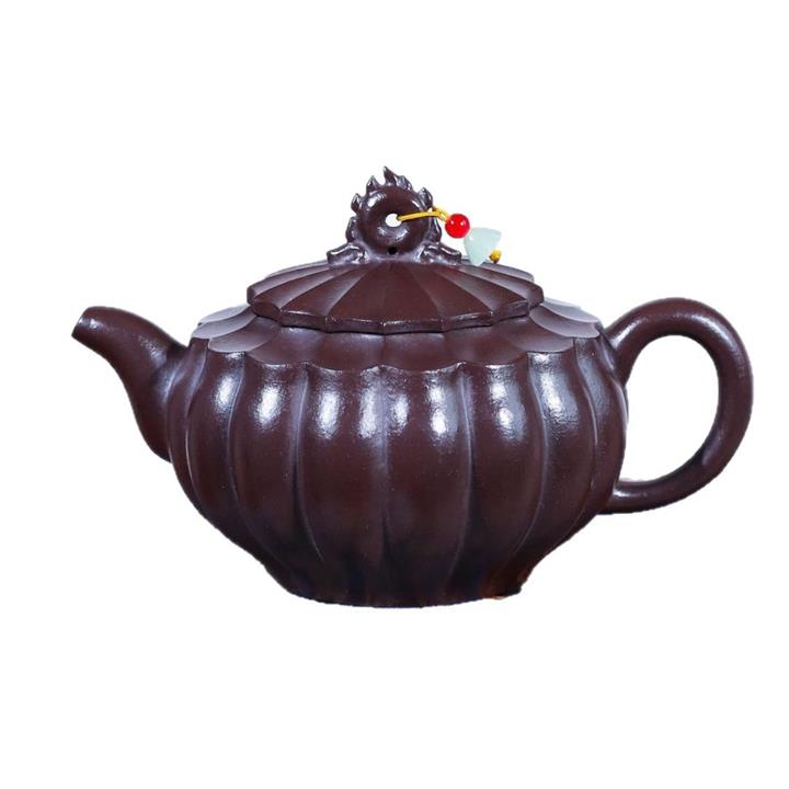 原礦紫泥瑞獸八方石瓢紫砂壺POT5543