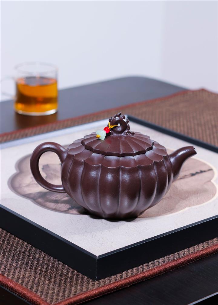 原礦紫泥泥繪石瓢紫砂壺POT5548