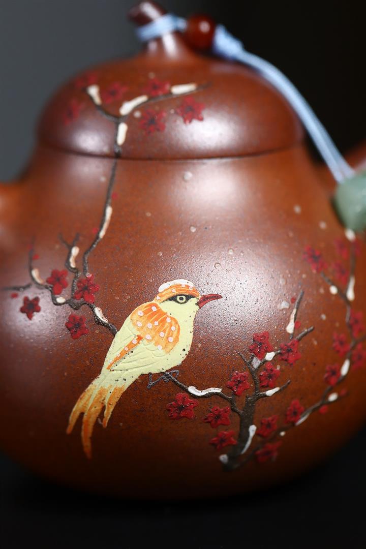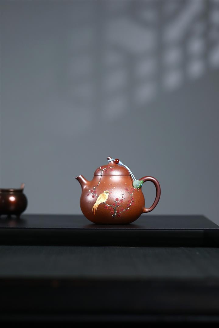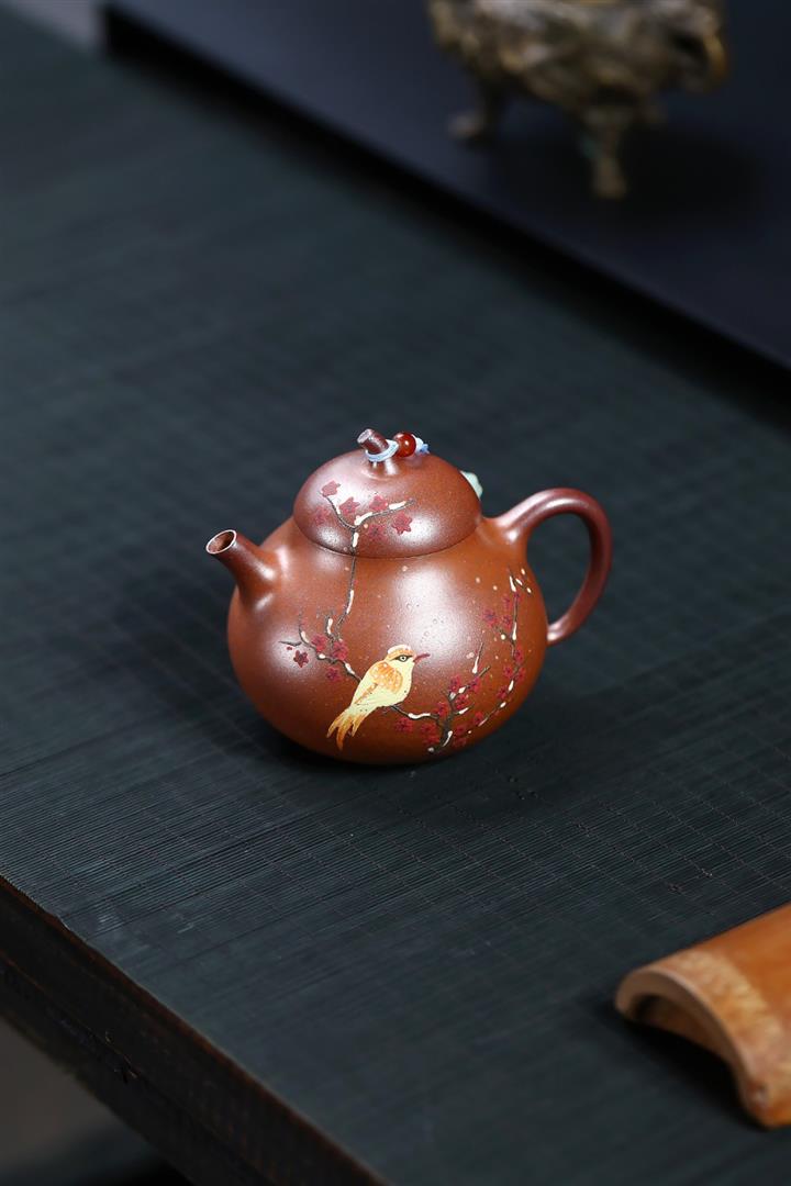 170cc原礦黃金段泥火焰燒金翎探梅茄瓜茶壺POT8764