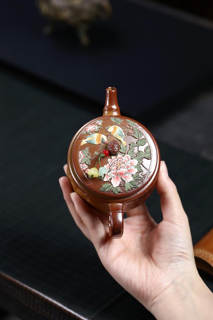 【泥料特點】砂土氣重,似淳實農民,日久使用,漸露鋒芒,養成變化,溫潤莊重。紫砂是壹種雙重氣孔結構的多孔性材質,氣孔微細,密度高。用紫砂壺沏茶,不失原味,且香不渙散,得茶之真香真味。紫砂使用越久,壺身色澤越發光亮照人,氣韻溫雅。紫砂壺長久使用器身會因撫摸擦拭,變得越發溫潤光澤。